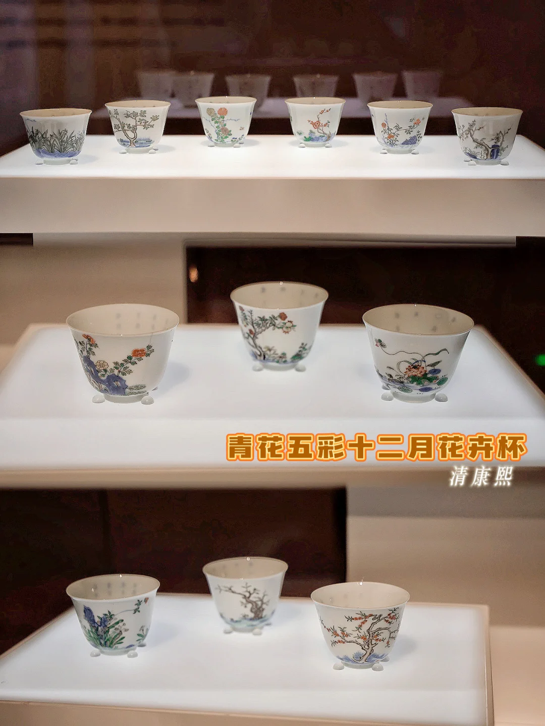 💐青花五彩十二月花卉杯:十二杯对应十二月月令花,流转四季花事,尽藏瓷盏之间。