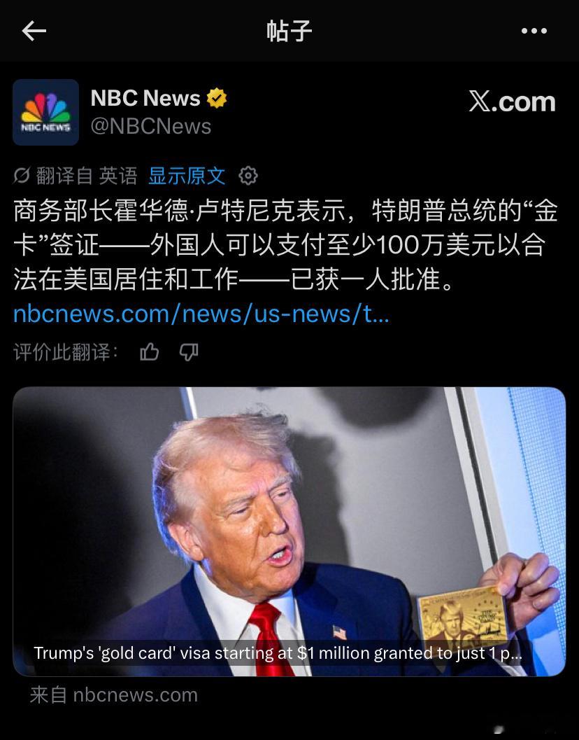 项目靠行政令(Executive Order 14351)推出,从宣传的“500万”降价到“100万捐款”,调整频繁。执行依赖多个部门协调,实际推进缓慢。 截至2026年4月,开放申请已4个多月,商务部长Lutnick公开表示只批准了1人。2. 换届风险大