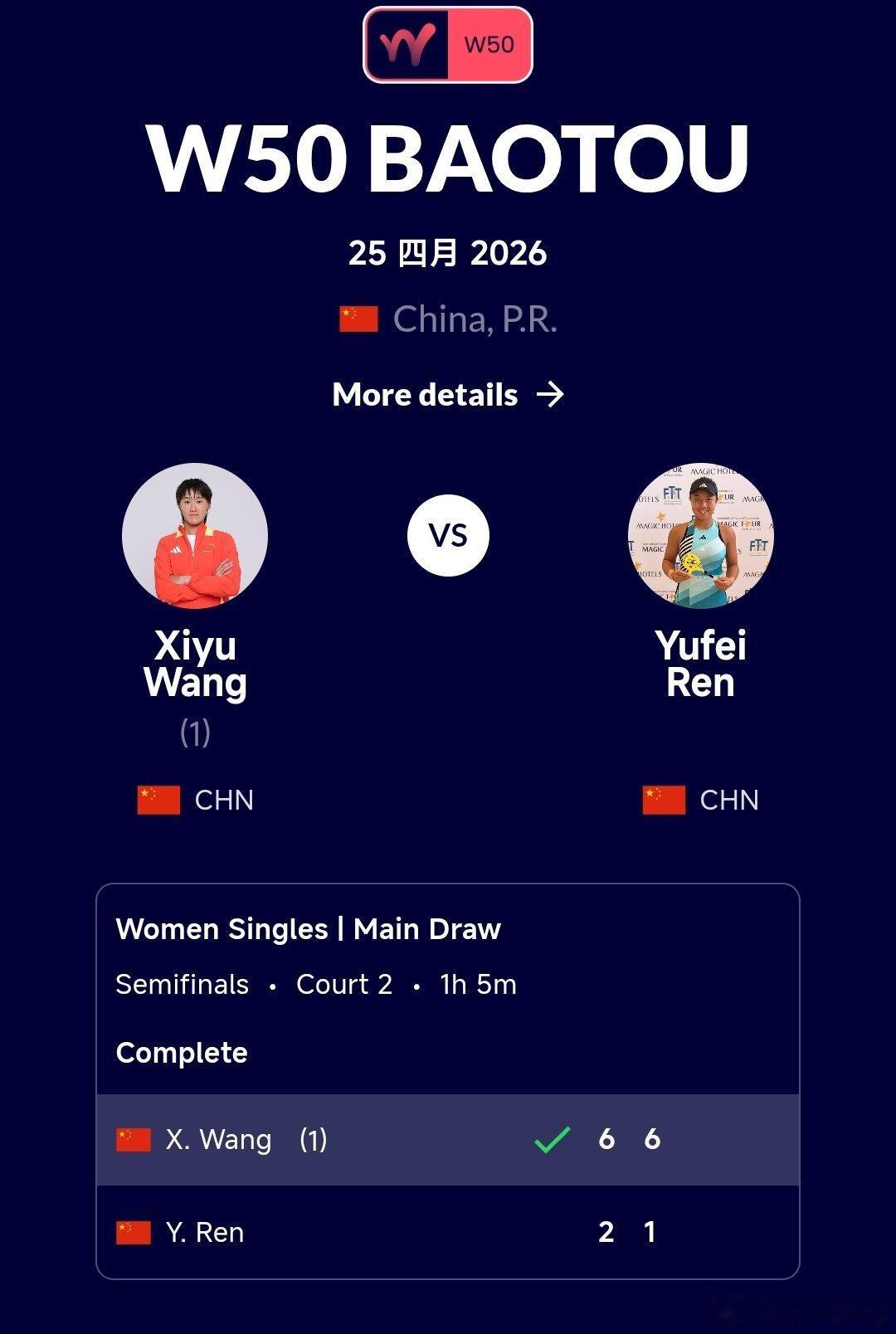 头号种子王曦雨🇨🇳6-2/6-1轻取任钰菲🇨🇳,赢得金花德比晋级决赛,恭喜王曦雨!🎉🎉🎉