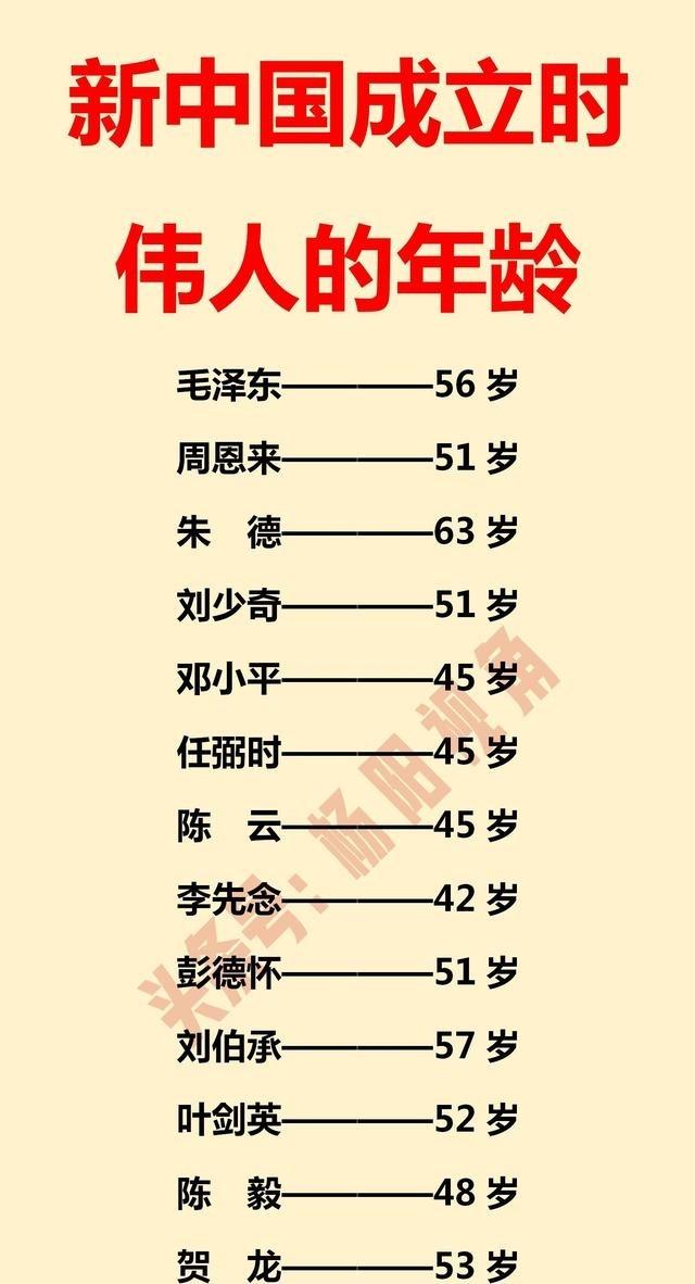 毛主席建国时才56岁?比你现在想象的年轻多了!一提开国领袖,很多人觉得应该是白发苍苍的老者。真相让你意外:1949年毛主席才56岁。 毛主席建国时才56岁?比你现在想象的年轻多了!很多人回想开国大典,脑子里先出来的,不是年龄,而是“开国领袖”这四个字带来的分量。分量一重,人就容易被想象成高龄长者。 1949年10月1日,站在天安门城楼上的毛泽东,按出生日期算,还差两个多月才满56周岁。 周恩来那一年51岁,也远没有老到很多人想象的程度。今天不少人五十来岁,依然是家里顶梁柱、单位主心骨。放在这个参照里,再看1949年,就会觉得那一代人真的是在盛年扛事。 再往前推,这种反差更明显。1921年7月23日,中国共产党第一次全国代表大会在上海开幕,最后一天转到浙江嘉兴南湖的游船上继续举行。 毛泽东1893年12月26日出生,当时其实还没满28岁;后来那些被写进大历史的人物,当时其实也不过是二十多岁的年轻人。 也就是说,从1921年到1949年,正好是28年。石库门里酝酿方向,南湖船上定下名义,之后又经历漫长而艰难的革命历程,最后才走到1949年的天安门。今天回头看,好像是一条直线;可身处其中时,每一步都不是顺着走过去的,而是硬生生闯出来的。 把1949年的毛泽东和周恩来放回这个人生阶段里看,“正当年”这三个字就不是修辞,而是一种很贴切的判断。1949年10月1日那天下午2时,中央人民政府委员会第一次全体会议先在北京召开;下午3时,开国大典正式开始。随后,五星红旗升起,54门礼炮齐鸣28响,天安门广场上有约30万军民参加庆祝。 打天下不容易,建国家同样不轻松。一个新政权刚刚建立,摆在面前的是千头万绪的现实问题:秩序要稳定,经济要恢复,制度要搭起来,内政外交都得迅速展开。 毛泽东后来从新中国成立一直工作到1976年,时间接近27年;周恩来则长期承担繁重的政务与外交工作。看清这一层,才能明白,开国时的“年轻”,不是轻松,而是刚好有能力继续往前扛。 历史镜头总喜欢保留最庄重、最有分量的那一面。你看到的是城楼、礼炮、公告、宣告,看到的是一个新国家的诞生,于是下意识会觉得,能站在那里的,一定是“老一辈”里很老很老的人。