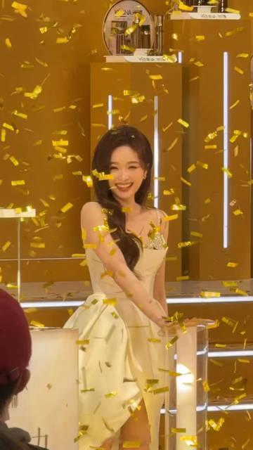 金色彩带雨中的吴宣仪 谁能扛得住金色彩带雨里的吴宣仪啊!彩带像碎金一样洒下来,她站在光影里微微仰头,嘴角的弧度刚刚好。这一刻的美好,足够循环播放一百遍~