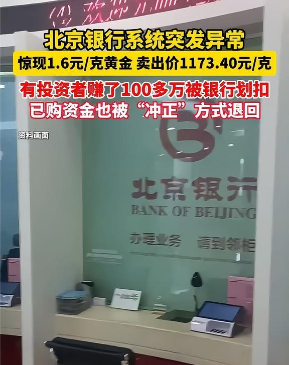 北京银行系统突发异常,惊现1.6元每克黄金, 有投资者“卡bug”盈利100多万