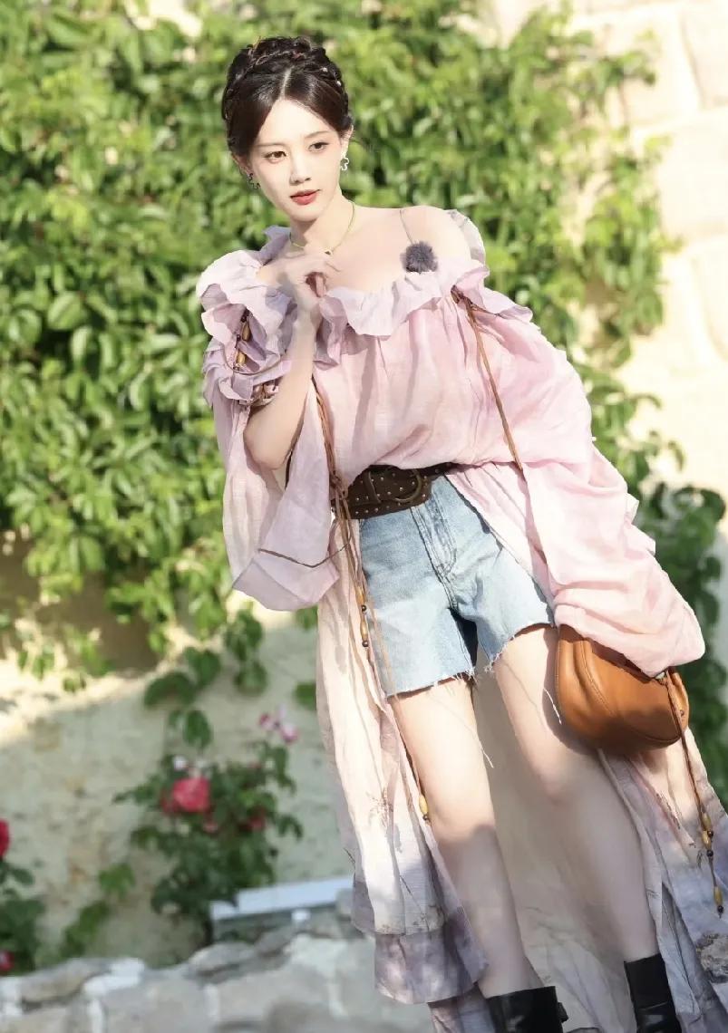 出道11年,李一桐还是不温不火。 我想说,论颜值,她也是内娱小花级别了。 你看这粉色裙子,我也不知道叫什么类型,她搭牛仔短裤,和短靴,很繁琐,但又美又甜。 作为山东姑娘,李一桐确有江南水乡姑娘的灵动,也演了很多部女主剧,和流量小生张凌赫还同一家公司,但她一直不温不火,看来她应该喜欢这状态。