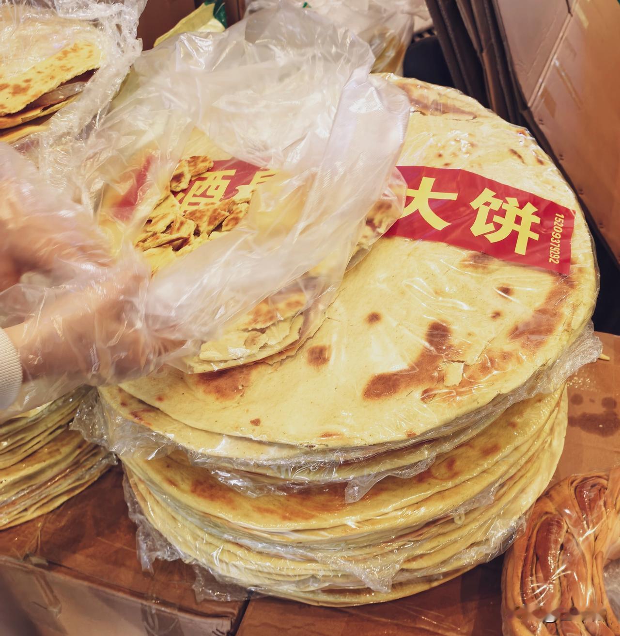 刚出炉的大饼,外酥里软,麦香直钻鼻孔。掰一块直掉渣。再配上辣子,夹个肉,一口下去香的直跺脚,这才是碳水的快乐。