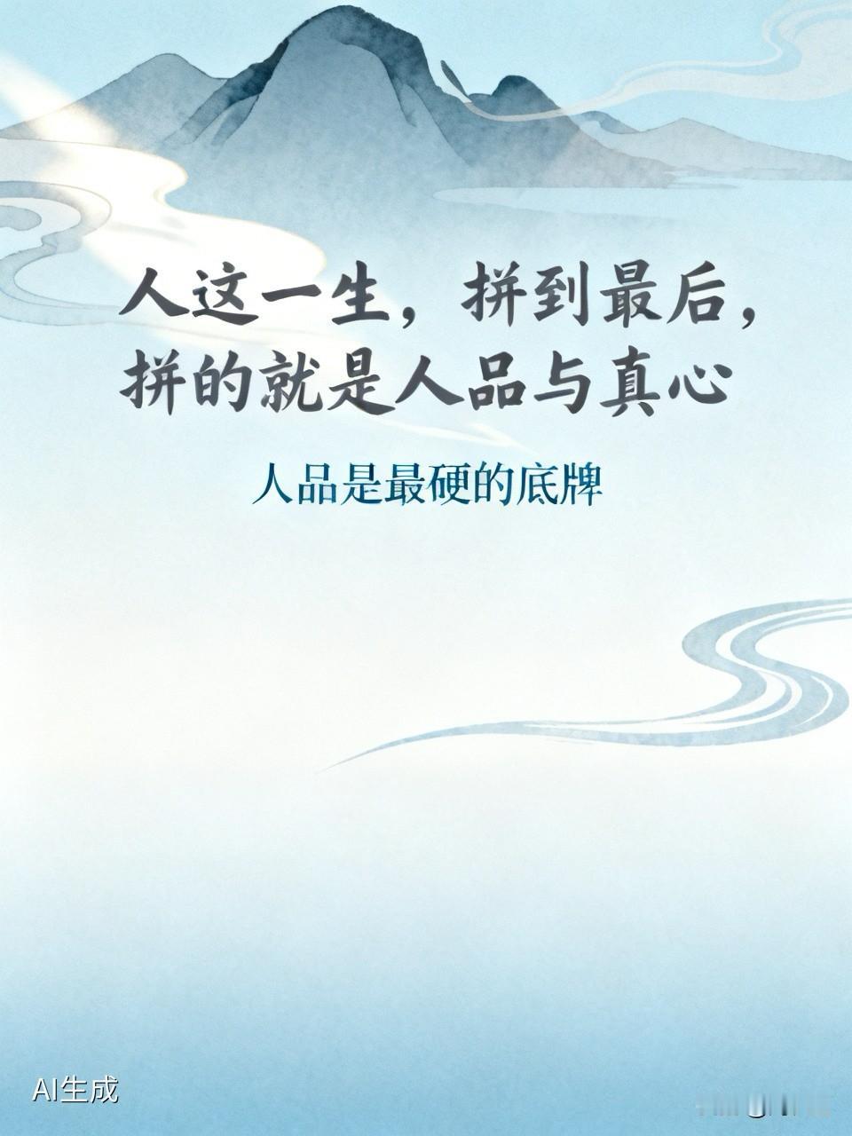 【人这一生,拼到最后,拼的就是人品与真心】 人这一辈子,奔波忙碌,忙名利、忙生计、忙前程,可静下心来想一想,我们到底在拼什么?说到底,拼的从不是钱财财富,也不是地位权势,而是刻在骨子里的人品,藏在心间的善良,实实在在的处世本心。 人敬人,敬的是人品。人品是一个人立身于世最硬的底牌,也是走遍四方最靠谱的通行证。人品端正,行事坦荡,不用刻意讨好,不必费心周旋,自然会赢得旁人发自内心的敬重。人爱人,爱的是真心。世间所有长久的情谊,从来都是真心换真心,虚情假意留不住人心,唯有赤诚相待,才能相守相伴岁岁年年。 人帮人,帮的是情分。风光时的锦上添花人人都会,低谷时的雪中送炭最是难得,落魄时刻伸出的援手,是一生都难忘的温暖底气。人交人,交的是本心,识人有度、处世有度,不交心术不正之人,只结品行端正之友。人比人,比的是志气,不攀不比、不卑不亢,守住自身风骨,活出自在模样。 人学人,取长补短,虚心向善;人信人,信守承诺,一诺千金最是靠谱;人容人,心胸开阔,格局够大,前路自然宽阔坦荡;人尊人,崇德向善,有德之人,自有众人相护;人念人,知恩图报,不忘旧恩,自有福报相伴;人劝人,心怀善意,暖心之言,照亮他人也温暖自己;人渡人,心存慈悲,善意渡人,终会渡己。 晨起暮落是日子,奔波忙碌是人生,路途再远,终有尽头。人生就是这样,耐得住寂寞才能守得住繁华,该奋斗的年龄不要选择了安逸。 度过了一段自己都能感动的日子,就会遇见那个最好的自己,踏实一些,你想要的岁月统统会还给你。没有谁的幸运,是凭空而来,只有当你足够努力,你才会足够幸运。 走过半生风雨,终于看透,人生最好的风水是人品,最好的福气是善良。往后余生,守好本心,修好品行,以真心待人,以宽厚处世,踏踏实实走好脚下每一步路,安稳安然度过往后余生。
