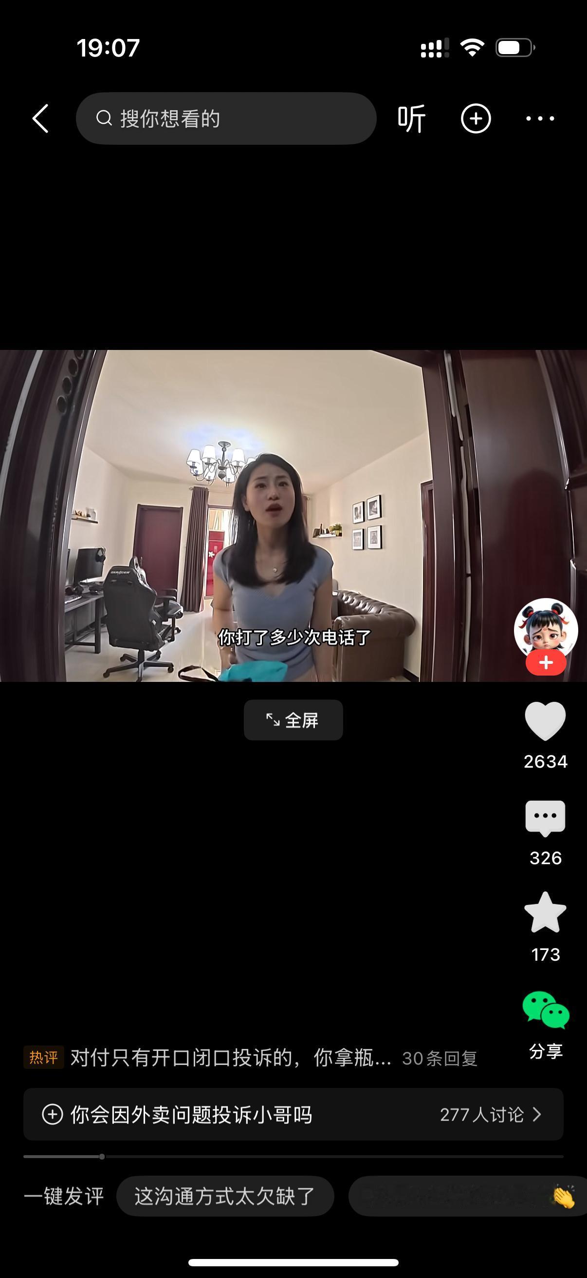 小哥送外卖给女子,女子大怒,不让你给我打电话,谁让你给我打电话的?小哥说下面门禁关了,我不打你电话怎么进来?女人说,你不会等别人一起进吗?小哥说我后面这么多外卖要送,超时了你负责吗?女子说,我负责。小哥奚落她,你点一个拼好饭,才3块钱,你负什么责?你负个毛线啊。女子不说话,脸都绿了。