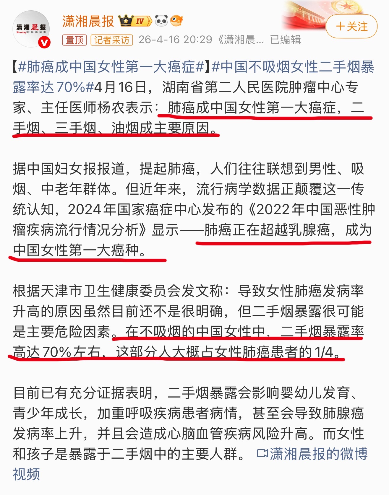 肺癌成中国女性第一大癌症·路人无权强行阻止他人公共场所吸烟既然故意杀人是死刑那我想不到抽烟无罪的理由