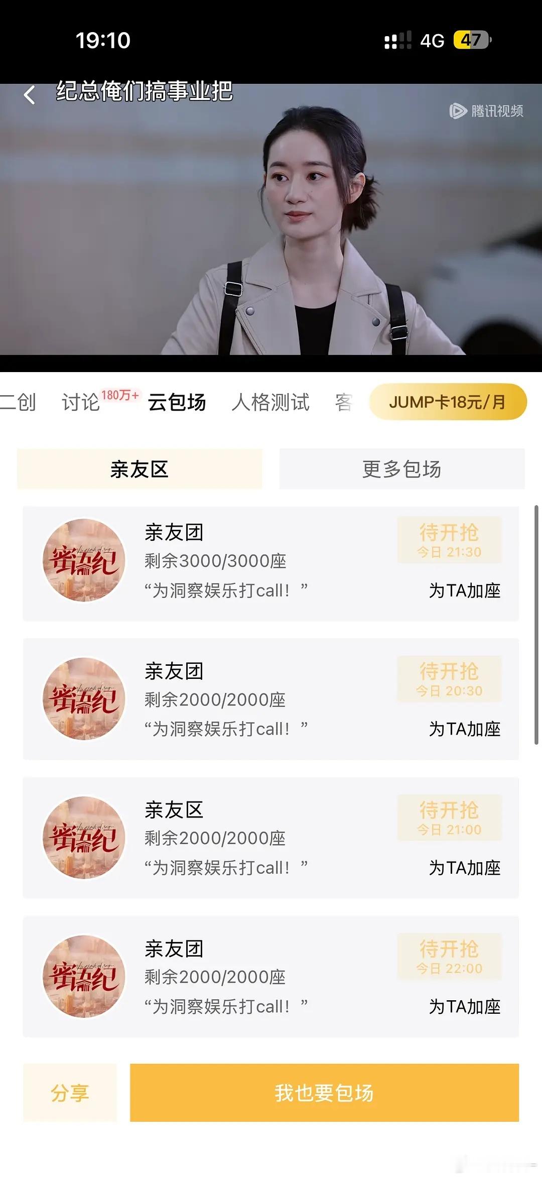 蜜语纪今晚万份云包场,从八点到十点多,大量奉送,没有腾讯云包场的欢迎来抢,剧播过半有会员的都有了,所以很好抢~