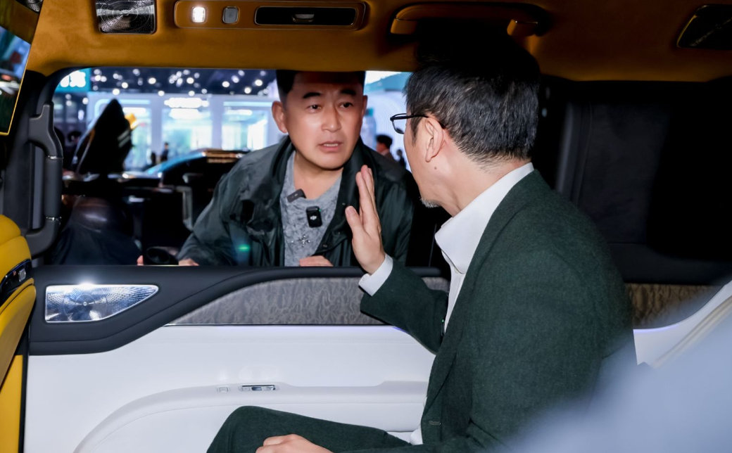 现场还有一个趣味名场面,让仰望U8L的黑科技实力圈粉京圈大佬同框打卡,仰望展台凭实力出圈——2026北京车展明星名场面纪实志飞举着手机对着U8L的车窗,对着车内的宁理喊“你按一下”,宁理按下按钮的瞬间,车窗瞬间变黑,再按一下又恢复透明,两人来回试了好几次,眼神里满是惊喜。宁理从车里探出头检查后,笑着说道:“这玻璃连剧组大灯都照不进去,以后带保密妆造被狗仔堵的时候,有这玩意儿就踏实了。”一句话点出了隐私玻璃的实用价值,也让现场观众感受到了仰望的人性化设计——不仅兼顾豪华与性能,更懂用户的真实需求。网友们纷纷评论:“这功能对明星太刚需了,堪称防狗仔神器”“建议内娱艺人保姆车全按这个标准卷起来”。