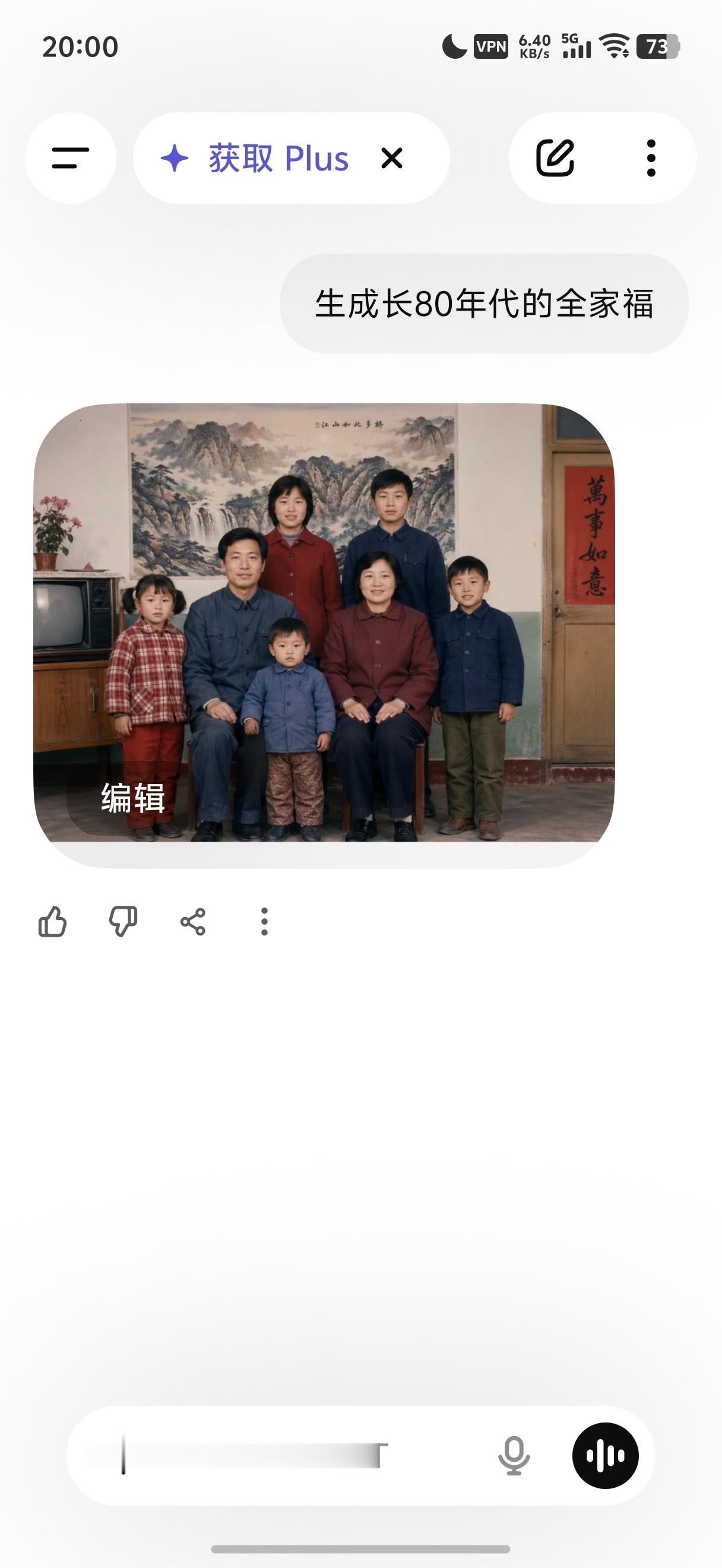 你们看,用ChatGPT image2试了下,生成一张80年代的全家福。