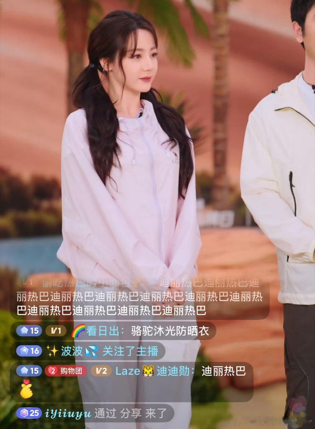 迪丽热巴直播,双马尾造型