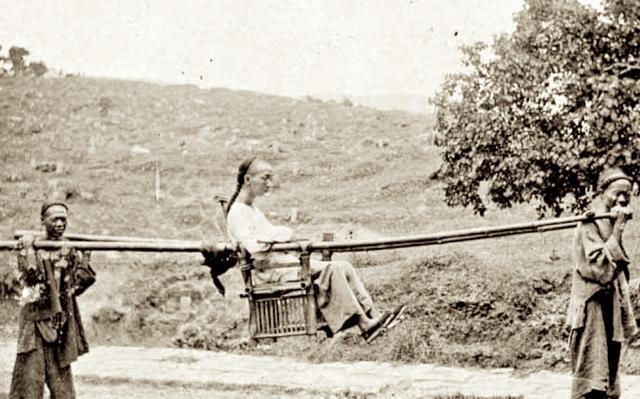 晚清,趴在"龟奴"背上的清倌人(妓女)。大清妓女凭"局票"到私家堂会应酬,由于身