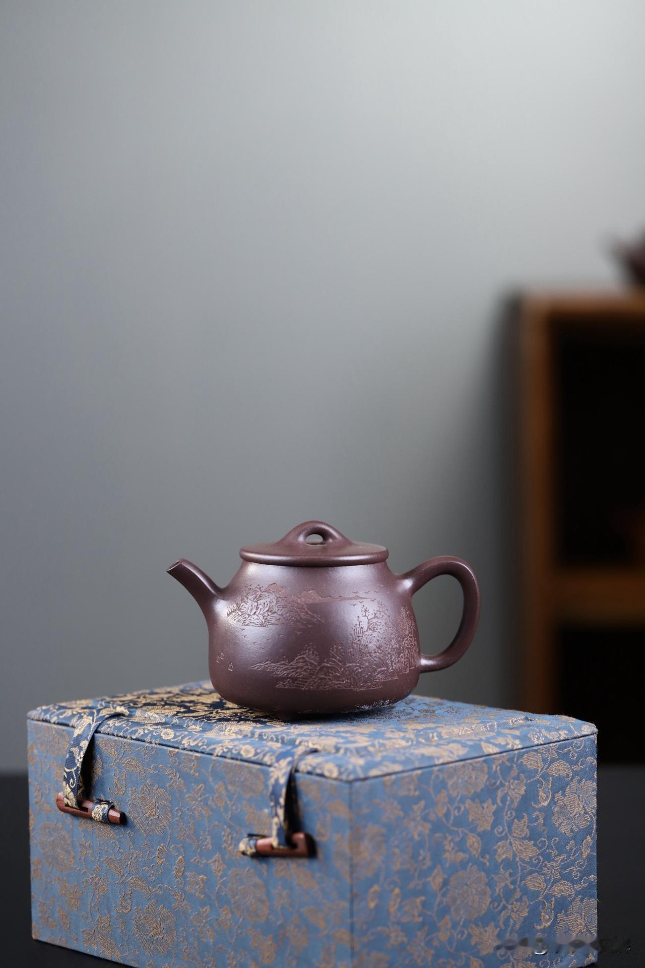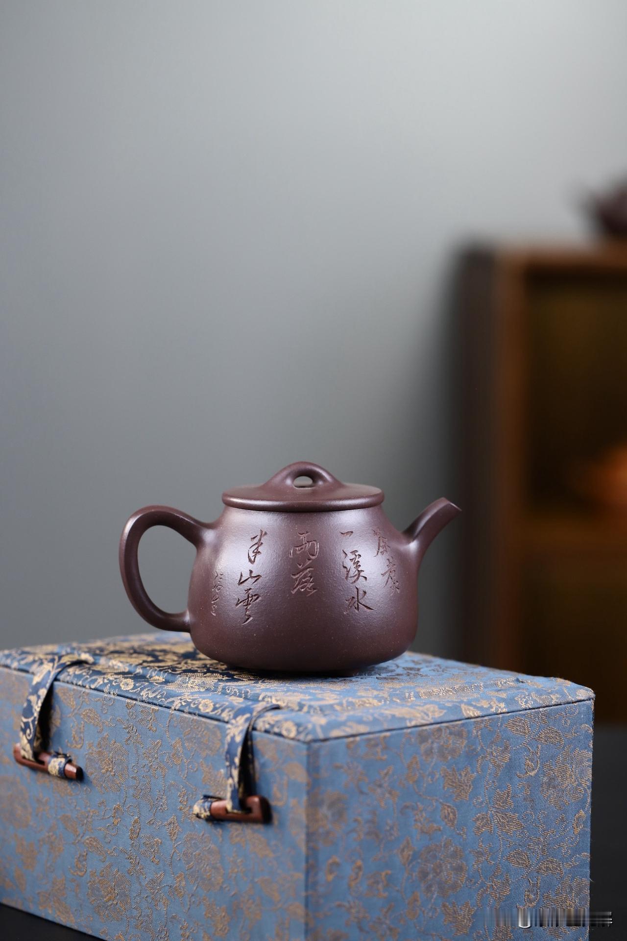 玉泉|精工 原矿青灰紫泥丨容量250cc 此作品整体意象和谐统一,留白间激发观者无限遐想。简约造型与质朴装饰交相辉映,艺术与文化价值在此完美融合。