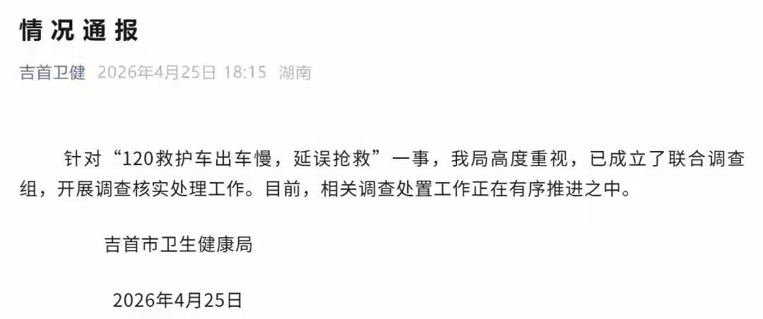 湖南吉首,4月16日,男子因为1岁儿子被呛窒息拨打120,结果21分钟后医院才派出救护车,其间接线员谎称已经出车,导致孩子错过了最佳抢救时机,不治身亡,悲痛欲绝又气愤的男子说:救护车明明延迟到场,接线员还隐瞒已经发车,造成他们一直等待,目前卫健委介入调查中。 这件事想想都让人胸口发闷。 一个刚满1岁的小孩吃东西呛着了,脸色很快就不对,喘不上气,孩子爸爸当时就慌了,第一反应就是打120求救,毕竟这种窒息的情况,早一分钟送到医院就多一分活的希望。 电话通了之后,爸爸把孩子的情况说得很清楚,就盼着救护车赶紧来。 挂了电话一家人就在楼下等着,一分钟、两分钟……十几分钟过去了,连救护车的影子都没见着。 爸爸急得又打120问,那边接线员说得很肯定,说车早就派出去了,已经在路上,让他们再等等。 一家人就接着站在路边等,眼睛盯着路口来的每一辆车,就盼着能听到救护车的警报声。 可左等右等还是没动静,孩子的情况越来越差,脸都已经憋得发紫了,大人急得直掉眼泪,又接连打了好几次电话去催,每次得到的答复都是车已经出发了,快到了。 就这么熬了二十多分钟,救护车还是没来。 后来才知道,这二十多分钟里,医院根本就没把车派出来,之前接线员说的“已经出车”全是假话,他们就眼睁睁抱着呼吸越来越弱的孩子,把最宝贵的抢救时间等没了。 直到拨打第一个急救电话的21分钟之后,救护车才终于从医院开出来。等车开到孩子家楼下的时候,小孩早就已经没了意识,医护人员现场抢救了半天也没救回来,一条才刚来到世界上一年的小生命,就这么没了。 换谁摊上这事能受得了?孩子爸爸后来既伤心又生气,说要是当时就知道救护车没出发,他们自己开车送孩子去医院,说不定还能抢回时间,就是因为信了接线员的话,一直在原地等,才把最后一点希望都耗没了。 现在当地卫健委已经介入调查这件事,大家都在等着一个结果。 120这条线就是老百姓的救命线,接线员说的每一句话,都牵着人命关天的事。 这次的事说白了就是把救命的谎话当成了随口的应付,本来能救回来的孩子,就因为一句谎称出车的话,没了。 谁家里没有老人孩子?谁能保证自己一辈子不用打120?这件事最让人后怕的就是,谁也不知道下次自己打急救电话的时候,会不会遇上同样的情况。 大家现在就盼着调查能早点出结果,该是谁的责任就谁担着,更得给所有的急救人员提个醒,别拿别人的命当小事,别让这种离谱的事再发生在其他人身上。 这事最戳人的地方,就是把普通人对急救系统的信任踩得稀碎。 咱们老百姓记120这个号码,不就是因为知道这是关键时刻能救命的线吗? 真遇上急病、意外,慌得六神无主的时候,唯一能指望的就是电话那头说的话是真的,救护车能真的往这儿赶。 可这次呢?接线员一句轻飘飘的“已经出车”,就把人家一家人的后路全堵死了。但凡说实话没派车,家长自己开上车往医院跑,20多分钟怎么都到了,说不定孩子就能救回来。 这不是什么工作失误,是把别人的命当麻烦应付,觉得说句“在路上”就能把人打发了,完全没多想这句话要付多大的责任。 更让人后背发凉的是,这种事不是个例,之前也出过120调度不及时、接线员不专业耽误救人的事。 这不光是某一个人的问题,是整个急救流程的监管有漏洞。 要是调度出车没记录、谎报情况没惩罚,那下次再有人遇上急事,谁还敢信120说的话? 咱们要的也不是别的,就是该追责的追责,该补的漏洞补上,起码得保证以后打120的时候,听到的每句话都是真的,救护车是真的在往这儿赶,别再让普通人拿命为这种疏忽买单。 《刑法》第397条规定,国家机关工作人员滥用职权或者玩忽职守,致使公共财产、国家和人民利益遭受重大损失的,处三年以下有期徒刑或者拘役;情节特别严重的,处三年以上七年以下有期徒刑。 本次事件中,120接线员及相关调度人员属于受委托行使公共服务职能的人员,谎称出车属于严重不负责任的玩忽职守行为,直接导致患儿错失黄金抢救时间死亡,符合该罪的构成要件,相关责任人应当依法承担相应刑事责任。