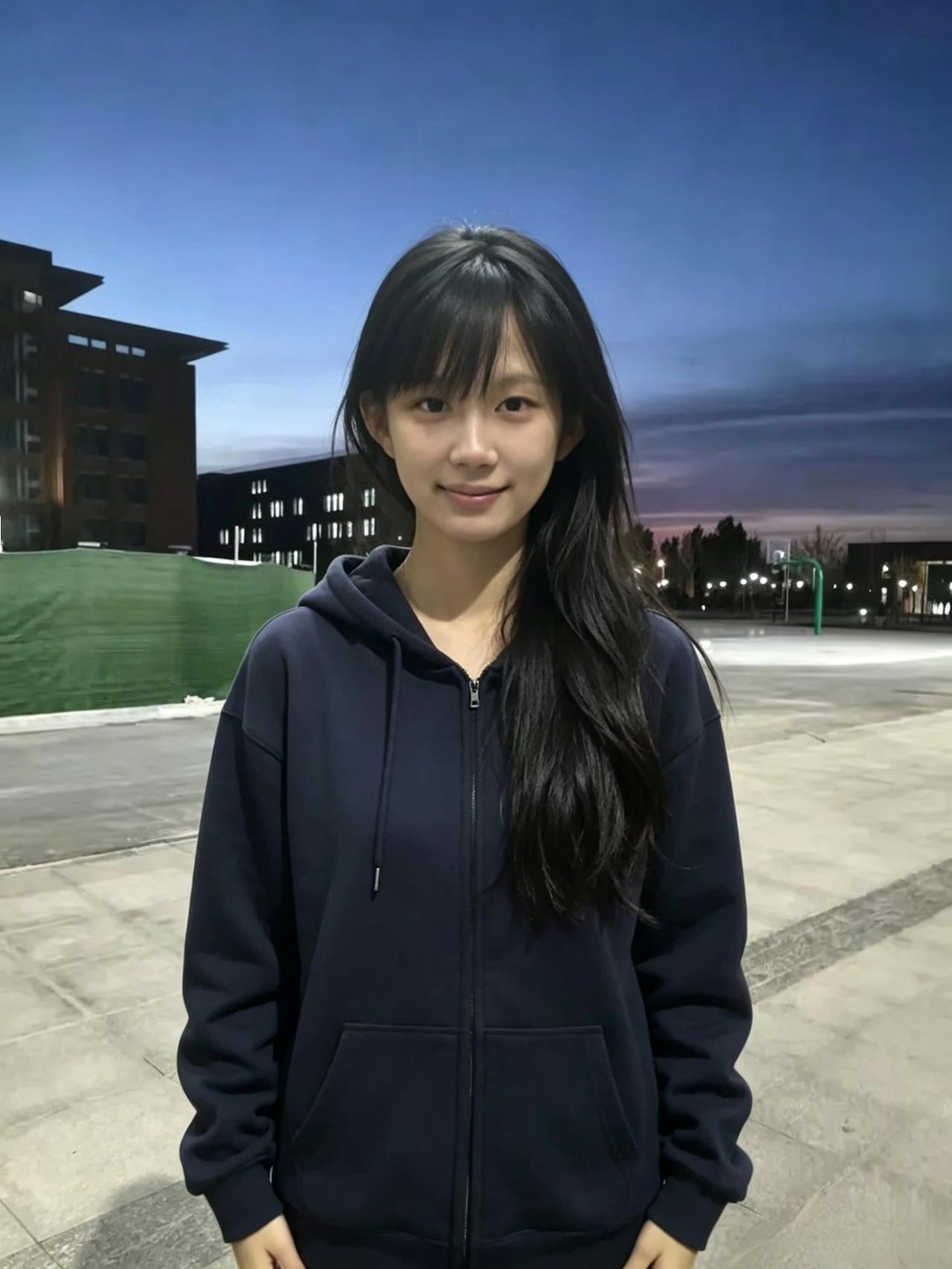 卫衣轻拢晚天悠,夜色球场影自留。 不改初心干净貌,少年风物最温柔。