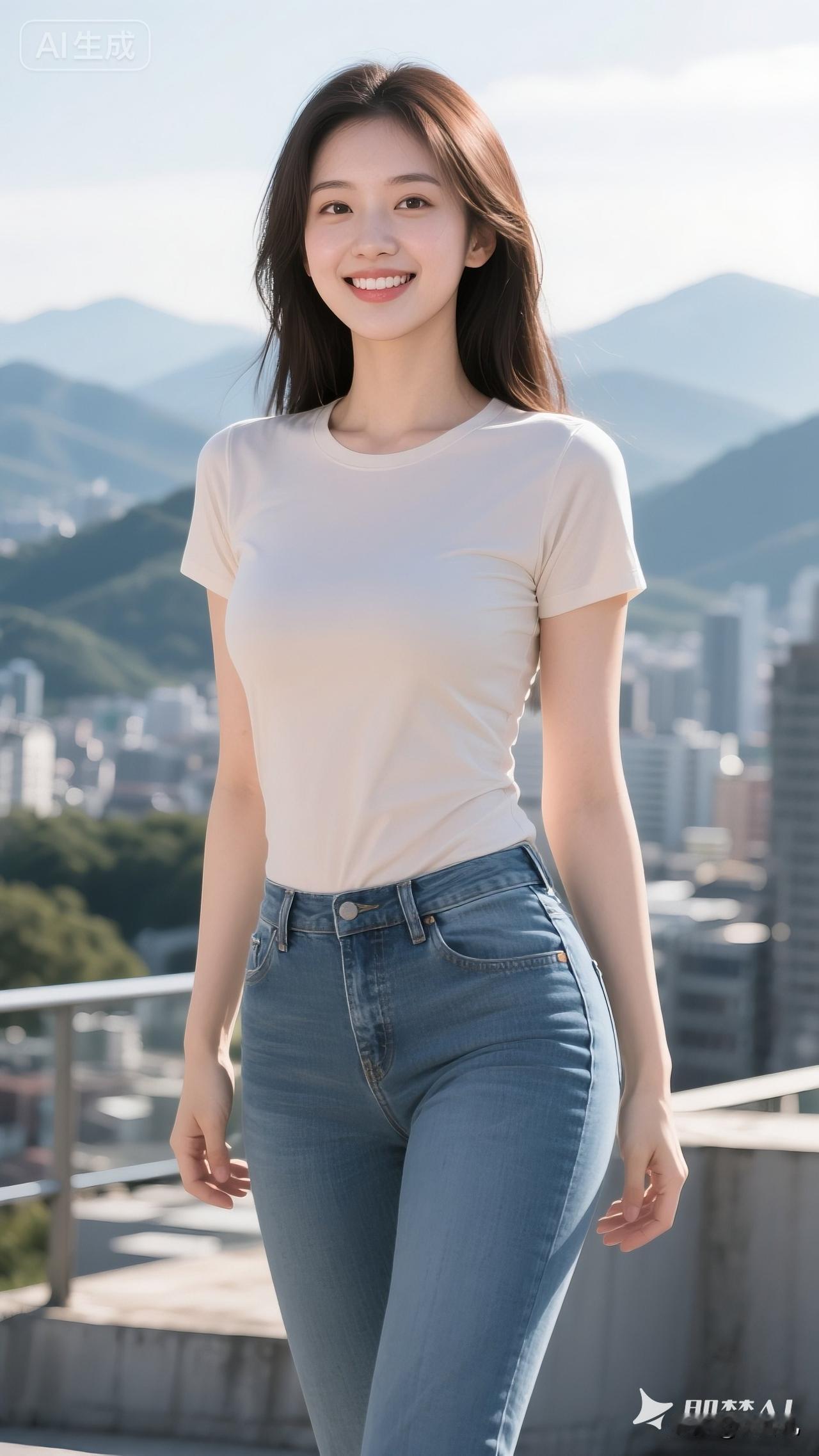 不费力的松弛感,靠基础款也能撑起来。 贴身不紧绷的T恤+百搭牛仔,出门旅行穿它,