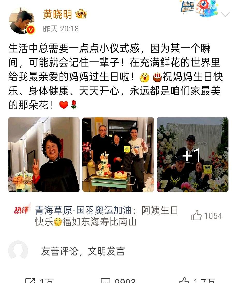 黄晓明又带小海绵出镜了,这次是给奶奶过生日! 一家四口合照,小海绵就靠在爸爸身边,只露了个小小的侧脸和背影,保护得真好。 没有大排场,没请圈内朋友,就是家人安安静静吃个饭。 黄晓明那条动态写得挺实在,说妈妈是“家里最美的那朵花”,听着就暖心。 他眼里全是笑,老太太捧着花,那感觉真不是演出来的。 这几年他晒的动态,基本都是陪家人,感觉人到中年,是真把重心放家里了。 话说回来,这种不铺张、只走心的家庭聚会,感觉还挺舒服的?