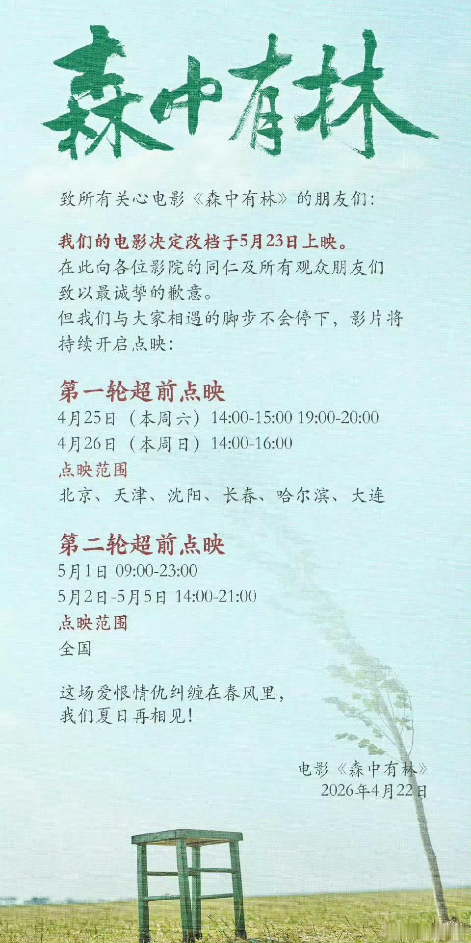 是从五一逃档但还要占着点映的那个森中有林吗拭目以待票房