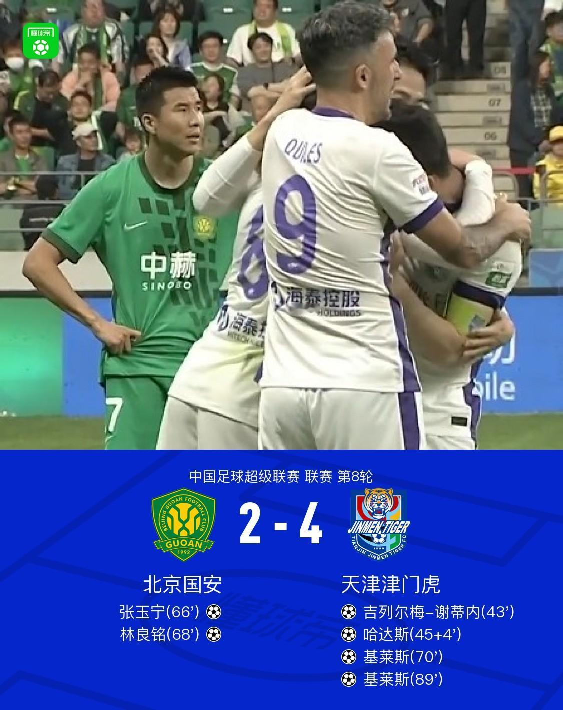 北京国安2-4天津津门虎,看完比赛有三点切身感受。 1.别再说于根伟临场指挥慢半拍了,今天可以称于半圣了,换人太果断了。前35分钟被北京国安压的喘不过气来,反击也打不出来,马上就要丢球了,马上换上谢蒂内和杨帆,进攻马上获得巨大改观,上半场打入两球取得优势。 2.北京国安还是防守问题大,就进攻来说,哪支球队对上津门虎这种铁桶阵也头疼,防守上拉莫斯冒顶,基莱斯两次反击都在柏杨的位置上打进,阿布都海米提也结束停赛跟队训练了,感觉他更稳一些。 3.天津津门虎上次在北京国安主场赢球还是2005年,今天20%的控球率换来一场大胜,这是外援的差距,也是主教练的差距,蒙哥马利好像只有一个变数,那就是换张稀哲。另外禁区内那个手球业余球迷已经超出业余球迷认知了,现在也不知道什么情况该判,什么情况不该判了,一切裁判说了算。