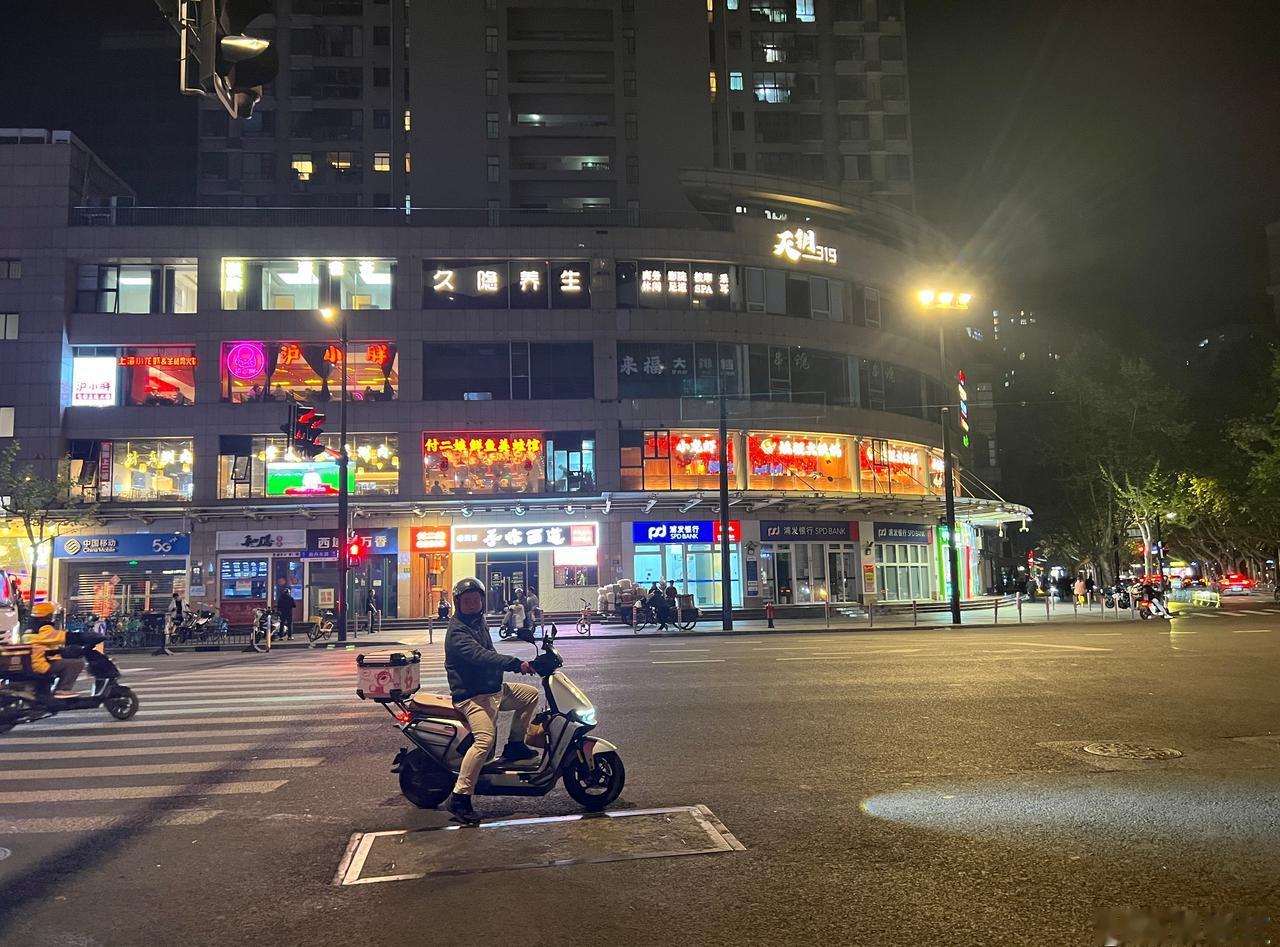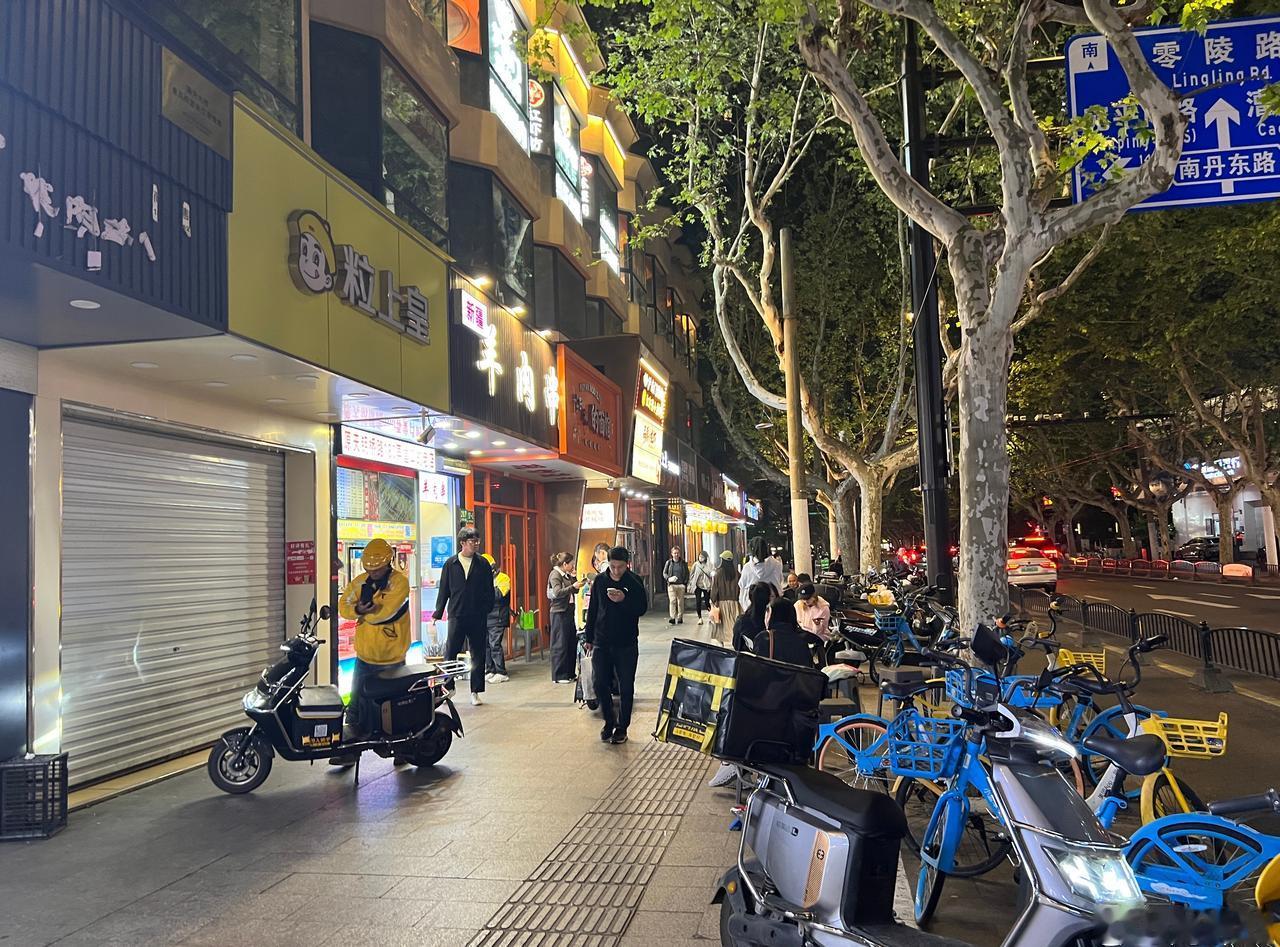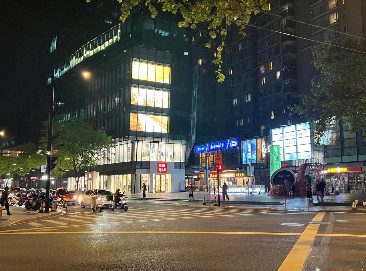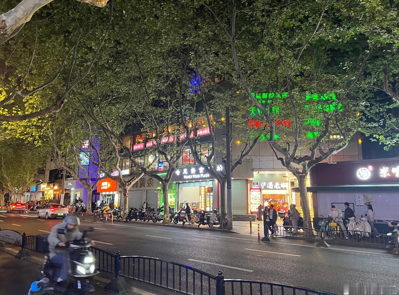上海,天钥桥路微更新。 ●树冠茏盖的悬铃木是街道的灵魂,在高约3米-4米的部位分枝,在6米以上开叶,夏天遮阴冬天落叶,基本上解决了遮挡店招的问题。 ●街道旁林立的店铺是街道活力的来源,夜晚光照来源主要依靠店招与商铺本身的灯光即可,自然真实不做作。 ●人行道有基本的宽度,目测大约5—6米,基本解决电动车停放与人行基本宽度。 ●道路边无法停车,可能会使街道稍欠松弛感。 街道更新上海