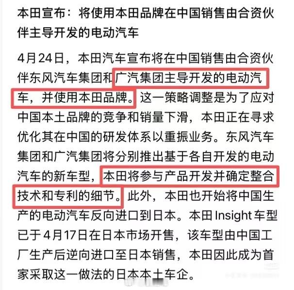 本田也终于想通了,摸着丰田过河的石头准备下水了……