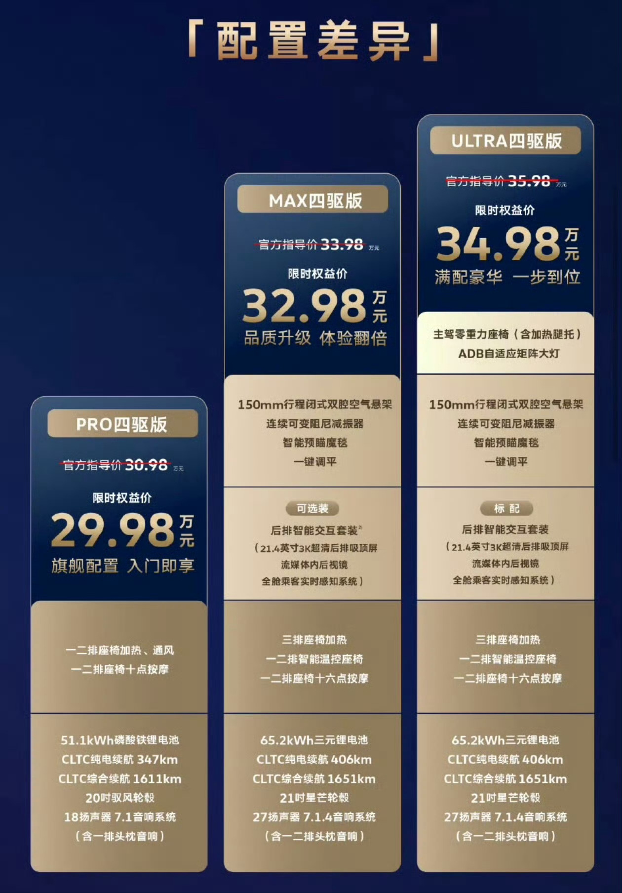 大众这次定价下了狠心,限时权益价29.98万起,比预售价低了整整3万。51度大电池+四驱起步,性价比直接拉满。外观也方正硬朗,黑色尤其好看。