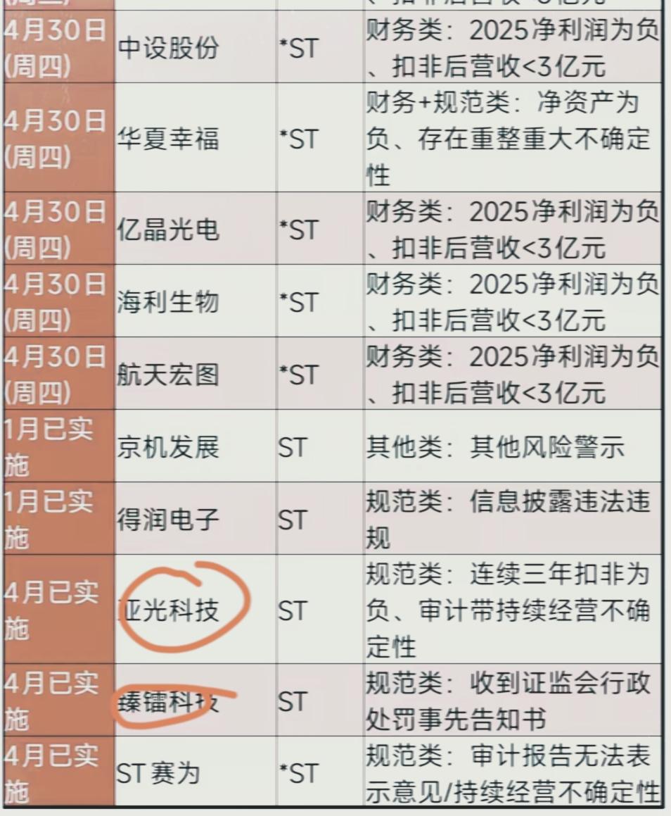 网友辛苦整理出来,四月份要戴帽的股票,数量不少,这些股票大概率要跌一段时间,不要轻易买入。 一些股票前段时间还大涨,比如华谊兄弟,臻镭科技,湘邮科技,春兴精工,奥特迅等股票,这样的大涨最后买单的往往是不同的散户。 四月份炒的是业绩,各个公司的一季度的业绩出来,炒作一番就要注意撤退。
