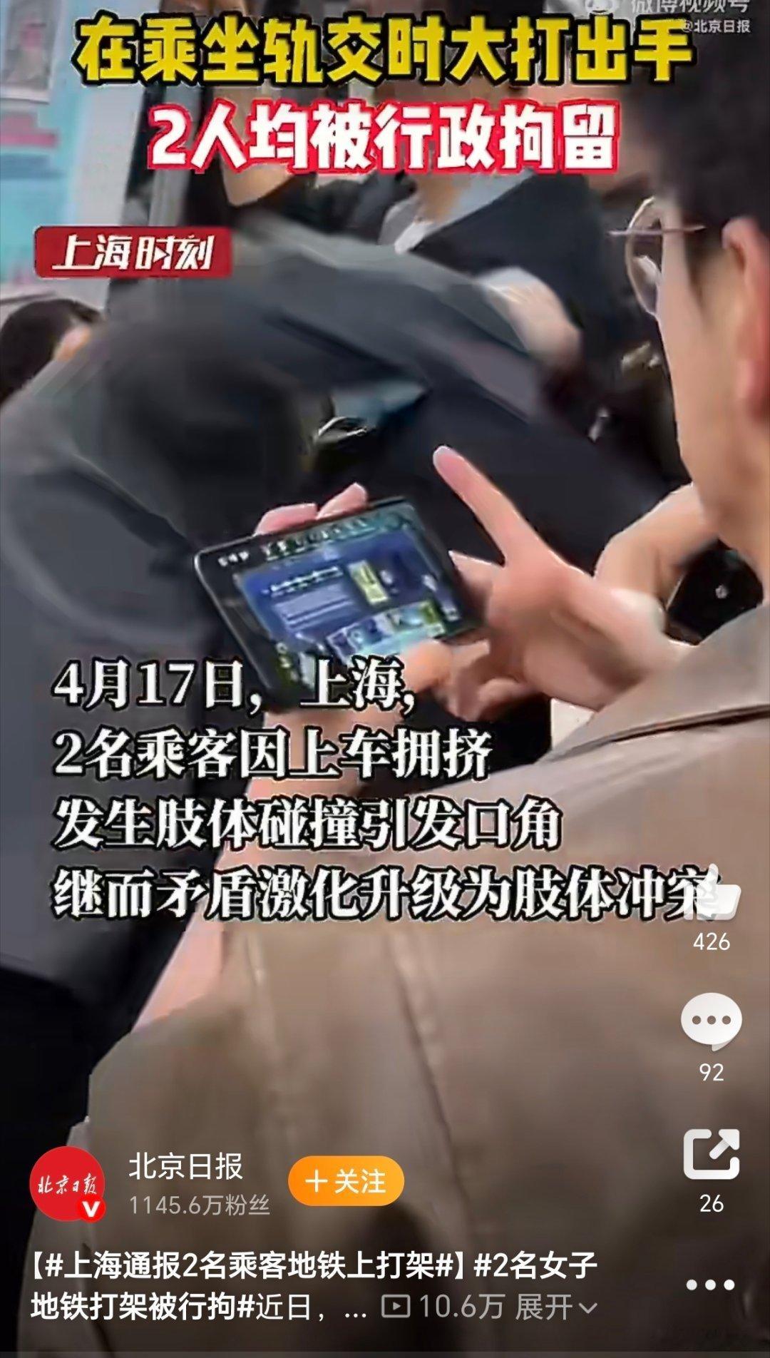 2名女子地铁打架被行拘女人何苦为难女人?