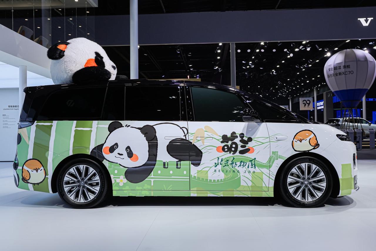 科技碰撞萌物,零跑D99拉着“顶流”萌兰搞了台熊猫定制车! 北京车展历来是各大车企秀肌肉、拼实力的“修罗场”,而一向以技术实力著称的零跑汽车,这次在北京车展上彻底颠覆了大家的固有印象。 在发布Lafa5Ultra这种性能猛兽的同时,他们还带来了一份巨大的“萌”系惊喜:一款与熊猫界顶流“萌兰”联名打造的专属座驾——零跑D99,也同步公开亮相! 这可不只是换了个皮肤那么简单,它把科技与可爱融合得天衣无缝,车身上憨态可掬的卡通熊猫形象随处可见,尤其是那标志性的橘色红脸蛋,让人忍俊不禁。最引人注目的莫过于车顶上那只巨大的趴姿熊猫玩偶,仿佛是“萌兰”本兰的专属座驾。 结合早前零跑官方公布的信息,D99的纯电版车型采用全栈1000V三电系统和115度超级混合电芯,增程版配备80.3度大电池,打消续航焦虑;双腔闭式空悬与连续可变阻尼减振系统,确保了极致的平顺与从容。 这波操作,零跑成功地将“科技普惠”的理性理念,转化为了能与用户深度共鸣的情感连接,也向世界展示了品牌充满活力的另一面。【来自懂车帝车友圈】