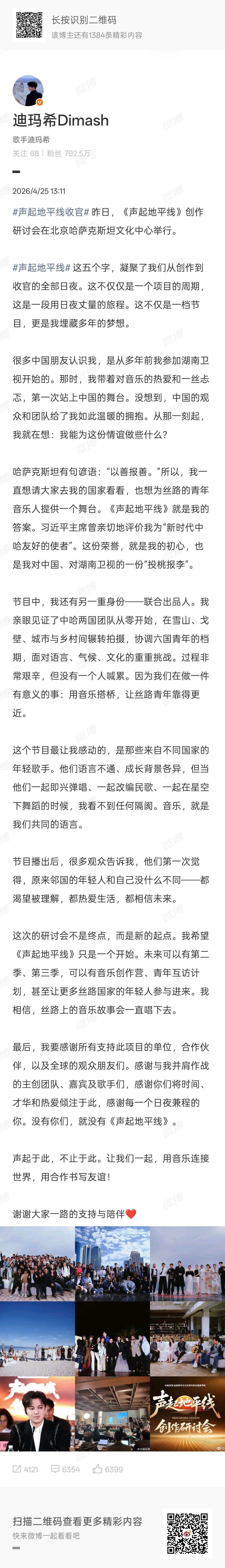 被迪玛希这段发言感动到了迪玛希在研讨会上的发言好真诚!分享哈萨克斯坦谚语“以善报善”,邀请大家去家乡做客,也想为丝路青年音乐节搭平台,温柔又有格局❤️迪玛希回忆参加歌手往事