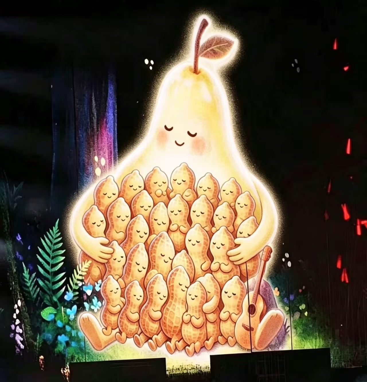 “谢谢你们来,成为我歌词中的主语”童话一样梦幻的花车配上每次出现必有“大招”的《经过》;彩带上写着有帝歌词和吉他谱;大屏上每一首合唱的歌塞满了抱着花生的小梨,带墨镜载着满车花生的臭屁小梨,长着翅膀带着花生飞的小梨……陈楚生就是这样一个很会表达爱意的人,因为在爱中成长、因为被幸福地爱着,所以也很会爱人每次都要幸福地见面呀,我们的小爱神(〃'▽'〃)