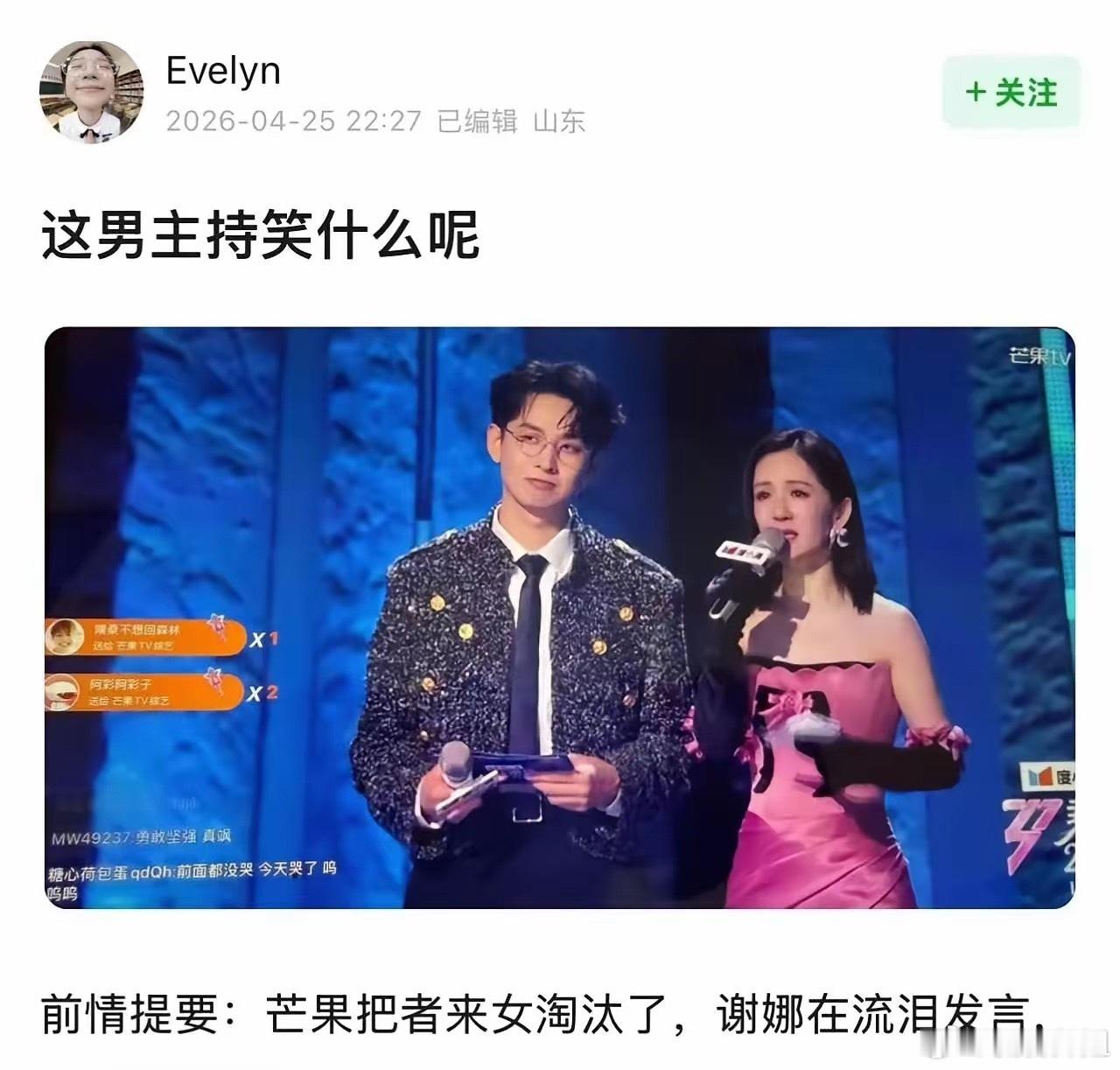 者来女淘汰者来女被淘汰后,现场所有姐姐都在哭,包括主持人谢娜也在哭,但齐思钧却一直在笑,没有丝毫难过的感觉,不少网友看后开始攻击齐思钧,觉得齐思钧没有共情能力,就像一个空心人站在那里,还不如换个机器人上去。齐思钧在这个节点上露出微笑的表情,的确有些不合时宜,特别是他身边的谢娜都哭成泪人了,脸上的妆都哭花了,其他姐姐走谢娜都没哭成这样,可见者来女被淘汰,不仅观众不服,谢娜也不服。而齐思钧的微笑和谢娜的爆哭同框后,这对比就让网友们觉得齐思钧没感情,不适合主持浪姐,纷纷要求节目组换人。还有人拿何炅和齐思钧比较,认为何炅在这种情况下,一定会共情能力很强的哭起来,都说齐思钧是何炅的接班人,但如今看来他距离何炅,差的还远着呢。不过小编觉得齐思钧没有哭还微笑着,应该是在秉持一个主持人的专业素养,主持人的专业就是时刻保持得体的微笑,如果他跟着其他人一起哭的话,网上骂节目组黑幕的话应该会更多。而且大家都哭了,就没有人出来控场了,还记得节目第一次直播的时候,多亏了齐思钧控场能力强,不然现场会更乱。大家怎么看这件事呢?