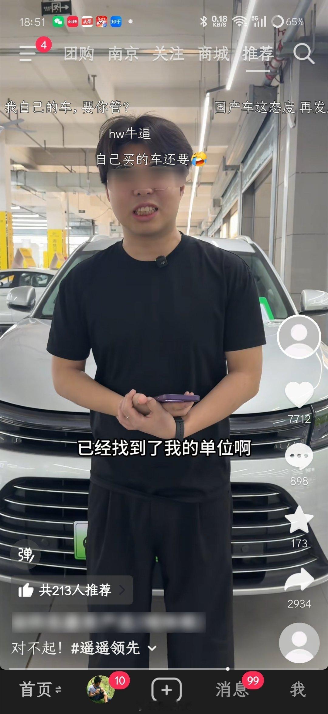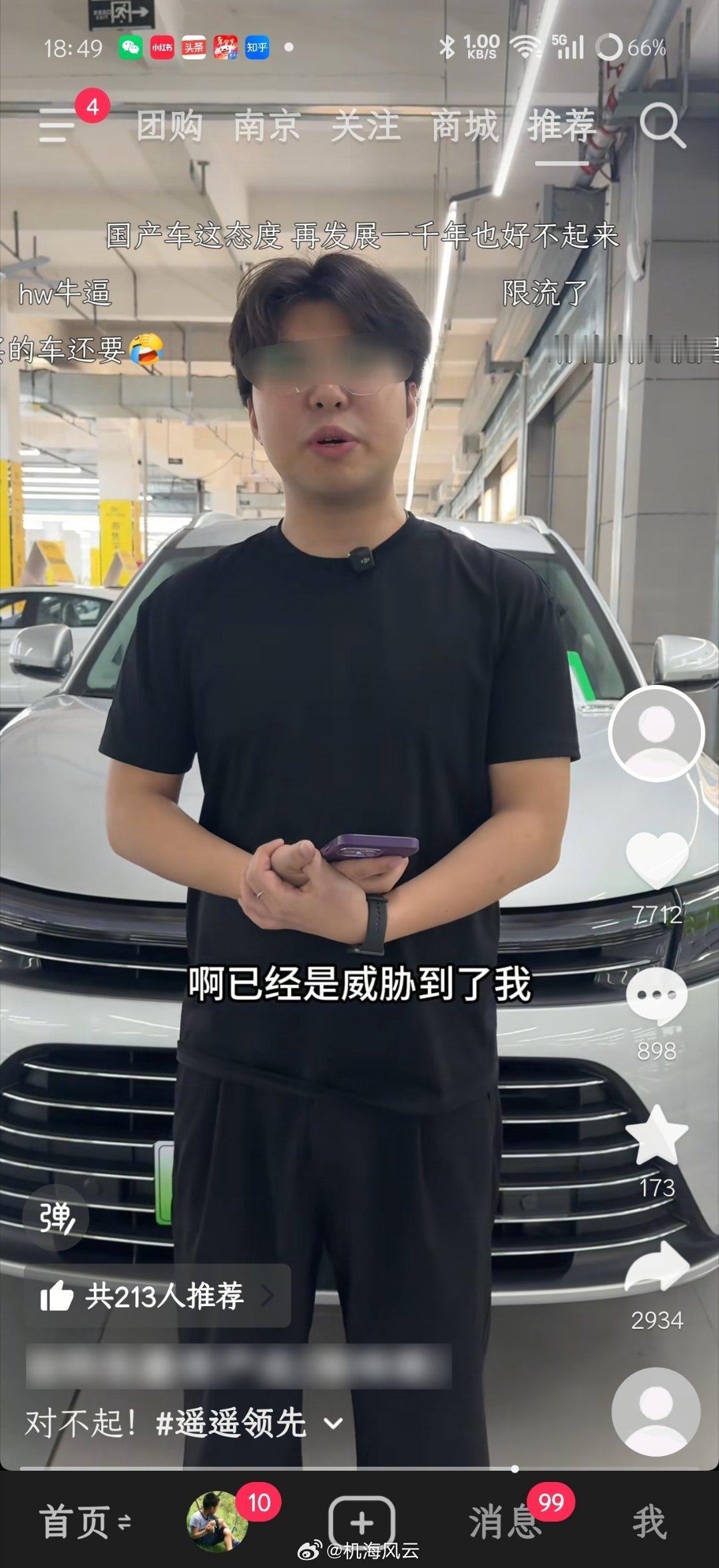 刷到有一个博主发视频道歉,称自己去尚界线下门店拍摄后受到了威胁,店员让他删掉视频,理由是拍到了店员,他解释称视频人脸全打码,对方称声音没处理,然后强调车内不属于公共区域,想拍摄车内需要得到授权,并且已经联系到了他的单位。