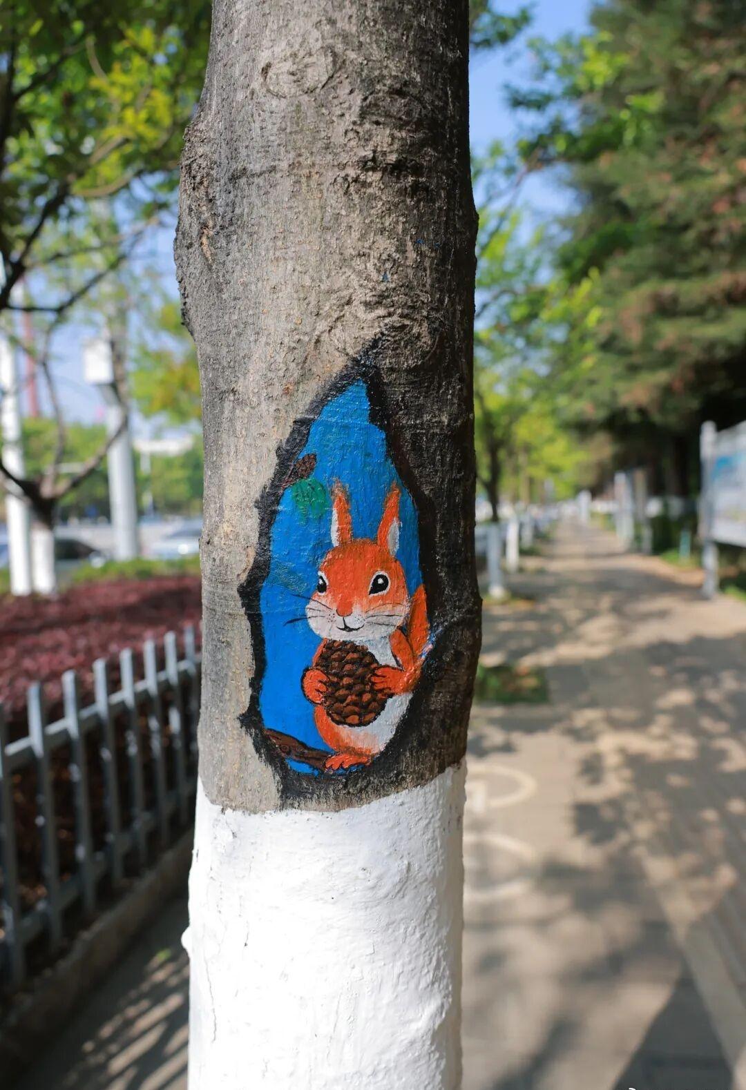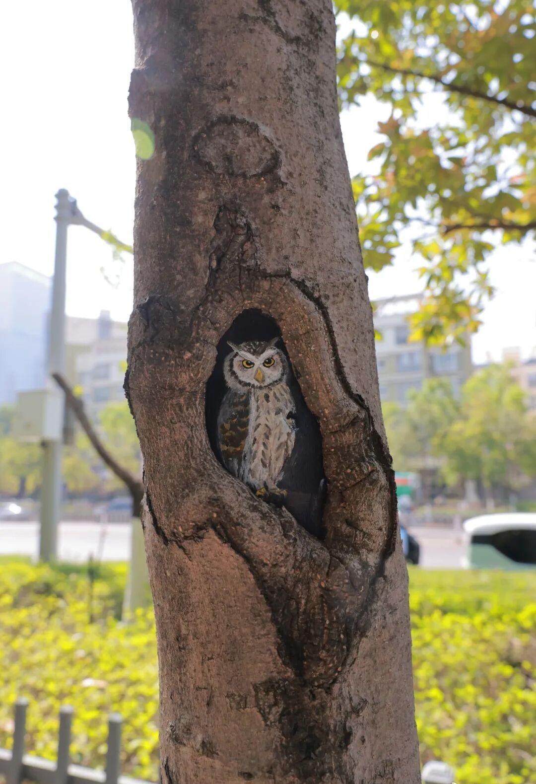 【树洞藏画添萌趣 呈贡街头巧绘城市小美好】近日,漫步在呈贡区祥和街、彩云路、洛龙公园周边路段,不少市民发现,路边树木上的树洞、树疤“变身”成了可爱的动物彩绘——呆萌松鼠、灵动孔雀、乖巧小狗、憨态猫头鹰等萌宠图案跃然树上,与绿树枝叶相映成趣,成为城市街头一道治愈又温馨的风景线。有一种叫云南的生活 此次树洞彩绘由呈贡区综合行政执法局牵头组织,呈贡区城市综合服务一体化项目管护单位实施,首批选取祥和街11棵树木进行创作,主要以银杏树、滇朴、乐昌含笑三类适宜彩绘的树木为主。画师们遵循因地制宜、顺势而绘原则,顺着树木自然肌理落笔,不破坏树木生长、不刻意遮挡枝干,将原本影响美观的树洞、树疤,转化为与城市生态相融的小微艺术景观,既美化了市容环境,又起到了树木保护作用。 据介绍,去年年底创作了首个作品——祥和街树洞里的猫头鹰,因造型逼真、融合自然获得市民好评。图案选用防水耐晒颜料绘制,持久鲜亮,题材以小狗、松鼠、狐狸、孔雀等市民熟悉、辨识度高的动物为主,尤其贴近小朋友认知喜好,让街头艺术更接地气、更具亲和力。 “小朋友看到都特别喜欢,停下脚步拍照打卡,还会互相讨论画里的小动物。”现场工作人员表示,这些小微彩绘不张扬、不突兀,与周边环境自然融合,让市民在日常出行中偶遇惊喜,收获城市漫步的小确幸。不少路过市民纷纷点赞,认为这种“微更新、巧美化”的方式,让城市更有温度、更具烟火气。 目前,祥和街首批11个树洞彩绘已全部完成。下一步,区综合行政执法局将根据首批实施效果,逐步向吾悦广场、洛龙公园周边等区域辐射延伸,持续拓展城市小微美化点位。同时,结合“一街一精品、四季皆可赏”思路,统筹推进道路补绿、花卉布景、立交桥墩绿化美化等品质提升工程,不断扮靓城市颜值。 近年来,呈贡区坚持生态优先、以人为本,持续推进城市绿化提质与精细化管理,全区城市绿化覆盖率达45.63%,绿地率40.02%,人均公园绿地面积18.71平方米。此次树洞藏画创意实践,以小切口实现大美化,用艺术点亮城市角落,让推窗见绿、出门入园、移步见景成为呈贡市民的日常幸福,为“春城花都展示区”建设增添生动注脚。