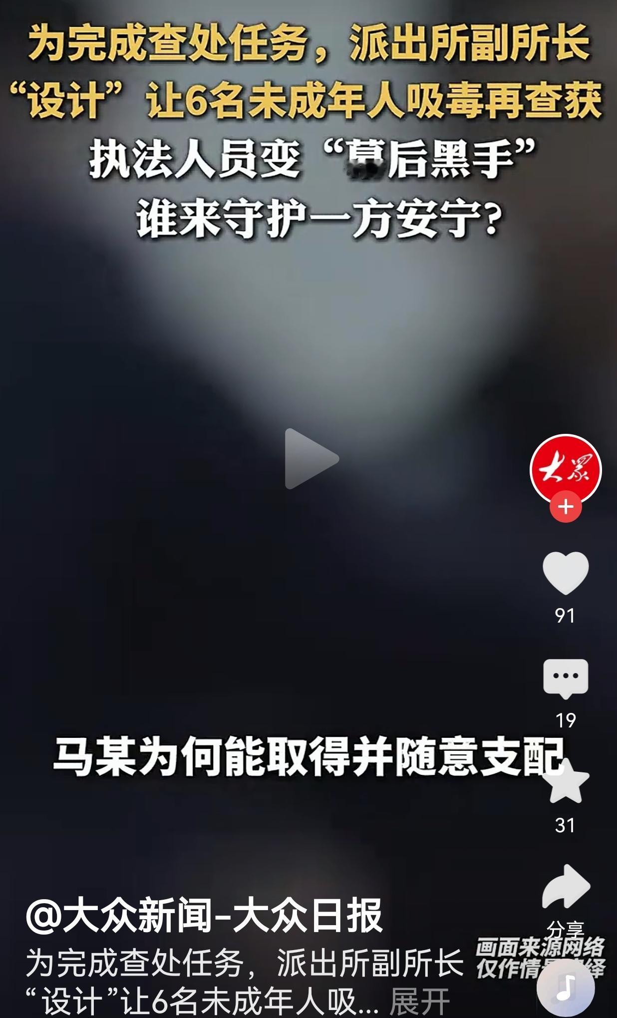 南京这起案子,我看完判决书,浑身都不舒服了! 一个本该守护孩子、守护一方平安的派出所副所长,为了完成所谓的“查处任务”,亲手把毒品送到6个未成年人手里,再带人把他们“抓”了。 实在难以置信。 2024年1月,南京某派出所副所长马某,正为完不成涉毒查处指标犯愁。他找到社会人员徐某,让对方提供涉毒线索。 徐某没线索,竟出了个丧心病狂的主意:马某提供含依托咪酯的“上头电子烟”,他找人吸食,再让马某来抓,任务不就完成了? 马某,同意了。 他明知依托咪酯是严格管控的违禁品,却能轻易拿到、随意支配。他不仅自己使用,还把这种“上头电子烟”交给徐某,由徐某召集6名未成年人。 宾馆房间里,孩子们围坐在一起。他们根本不知道,递到面前的不是新潮玩意儿,而是能毁掉一辈子的毒品。 不知情的他们被教唆吸食,还以为是普通“潮玩”,吸得云里雾里。就在他们恍惚时,警察破门而入将他们按倒,带队的,正是那个亲手递毒品的副所长马某。 这哪是执法?分明是一场精心策划的犯罪。 说真的,看到这儿我手都在抖。这些孩子才十几岁,本是被保护的对象,却被执法者当成完成KPI的工具,亲手推下深渊。 他们的人生,因一个警察的“业绩焦虑”,蒙上了永远洗不掉的污点。 网友看到后评论说:“这种人怎么可能叫警察?这种行为,比直接贩毒更隐蔽、更伤人!毒贩害人是为钱,他害人就为任务指标?为自己前途把孩子往火坑里推,毫无良知!” 也有的网友说:“依托咪酯是新型毒品啊!他自己拿着给未成年人吸,这和毁掉孩子人生有啥区别?就判5年?实在想不通。” 还有的网友说:“指标是死的,人是活的。完不成任务就要造任务?为抓吸毒的先让人吸毒?这逻辑,笑着笑着就哭了。” 更有网友表示:“作为妈妈,不敢想我的孩子遇到这事会怎样。谁来保护孩子?连执法的人都在伤害他们,我们还能信谁?” 这些评论,全是普通人最朴素的愤怒。 我们信任警察,因为他们是我们和黑暗之间的墙。可马某,亲手拆了这道墙,钻进黑暗,成了最防不胜防的幕后推手。 惩恶扬善的执法者,成了毒害未成年人的始作俑者,这种反差,让人细思极恐。 他不是不知道未成年人吸毒的后果,不是不懂依托咪酯的危害,更清楚这些孩子本不会接触这些东西。可他不在乎,只在乎任务、前途、业绩。 为了这些,他无视法律尊严,践踏职业操守,把6个孩子的人生当垫脚石。 更让人脊背发凉的是,这不是个案。为完成指标“制造案件”的事,早有发生。 我们总说“有案必破”,可如果破案要靠制造案件,我们是在维护秩序,还是制造混乱? 这些冰冷的指标,到底在扭曲初心,还是在逼人为恶? 法院一审,马某获刑5年,三名社会人员同获刑。可那6个孩子呢?5年刑期,换不回他们的人生。他们被贴上“吸毒者”标签,以后找工作、考学、当兵,都会被这污点绊住。他们或许一辈子走不出阴影,而毁了他们的人,几年后就能重新做人。 这件事最让人绝望的,不是一个警察的堕落,而是它打碎了公众对执法者的信任。当保护者变成加害者,手无寸铁的孩子,该向谁求助? 我们不怕坏人,就怕披着好人外衣的坏人;我们不怕黑暗,就怕本该守护光明的人,却背弃了初心。 马某的判决下来了,可6个孩子的人生,再也回不到从前。 我们愤怒,不是为宣泄情绪,而是希望这样的事,永远不再发生。希望冰冷的指标,不再异化工作的初心;希望执法者永远记得,身上的制服,代表的不是权力、业绩,而是守护。 守护一方安宁,从不是口号。它是不向黑暗妥协,不向利益低头,更不向无辜者举起屠刀。 对这种知法犯法、滥用职权的行为,必须从严查处,守住法治底线。 信息来源:新京报