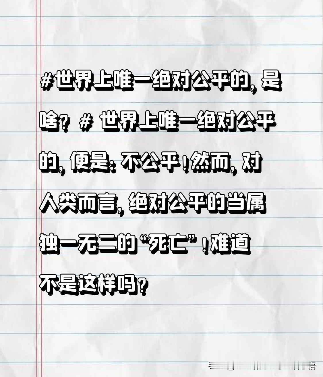 世界上唯一绝对公平的,便是:不公平! 然而,对人类而言,绝对公平的当属独一无二的“死亡”!难道不是这样吗?