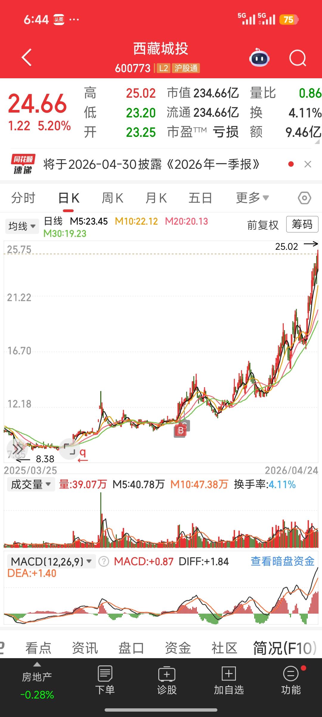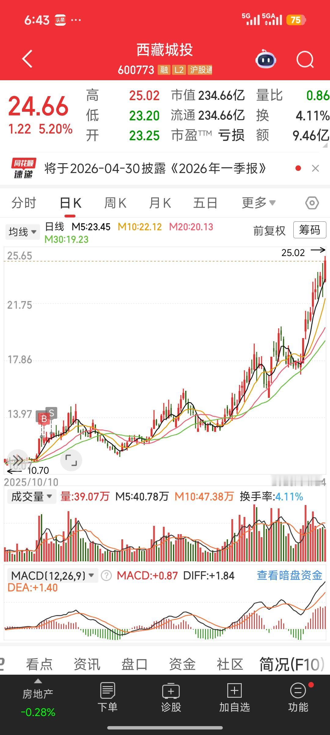 踏空西藏城投翻倍行情!23元高位还能上车吗?3种稳赚策略,不追高也能吃利润 西藏城投近一年大涨160%、近3个月涨70%,从低位一路逼空到23.6元,很多人一直看好却反复踏空,现在高位追也不是、等也不是。 给你一套不追高、不接盘、稳抓后市机会的实战策略: 1. 绝不高位追涨,放弃主升浪 当前股价处于情绪+资金抱团高位,估值严重透支业绩(2025年亏损5.53亿),一旦锂价回落、板块退潮,极易出现单日大阴线、连续回调。 踏空不可耻,高位接盘才致命,坚决不赌最后一段。 2. 等待大分歧低吸,只做企稳机会 强势股必有大分歧: - 等待首次放量开板、单日大跌5%+、回踩5/10日均线 - 出现缩量企稳、资金回流、龙虎榜净买再小仓试错 - 仓位控制在2成以内,不重仓博弈,破位立即止损 3. 切换同板块低位补涨,安全性价比更高 盐湖提锂主线仍在,不必死磕龙头: - 挖掘锂矿储量丰富、低位未大涨、业绩改善的补涨标的 - 重点关注西藏矿业、盐湖股份、蓝晓科技等同赛道票 - 补涨股启动后,涨幅不输龙头,风险远低于高位追高 4. 心态调整:股市机会永远有 这波没抓住不可怕, 可怕的是为了回本乱追高、乱换股、频繁割肉。 守住本金,耐心等待下一个低位启动、逻辑明确的标的, 远比在高位博弈更稳、更赚。 踏空是常态,不追高、不急躁、守纪律, 才能在股市长期活下去、赚大钱。 投资必警:本文内容基于公开信息整理,不构成任何投资建议。股市有风险,投资需谨慎。 如文图有侵权或者来源标注有误不让转载的,可在今日头条私信我们,我们会第一时间删除处理。