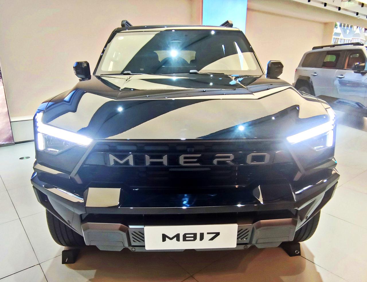 豪华智能越野SUV《猛士M817》 猛士M817是东风猛士科技与华为,全栈共创的豪华智能越影SUV,主打可城可野全场景能力。2026年4月推出春季焕新版,权益价30.19-36.99万元。 新车全域通达,智野于千里,经济于使用。百万级豪车磐石底盘,全铝底盘+前后双叉臂独立悬架,VMC智能底盘域控,双向20度后轮转向,最小转弯半径5.2m。900mm涉水深度,无惧城市内涝、越野涉水,猛士原地掉头,最小3.5m掉头半径等。 (配图拍自《东风猛士-沈阳长白万象汇店》)