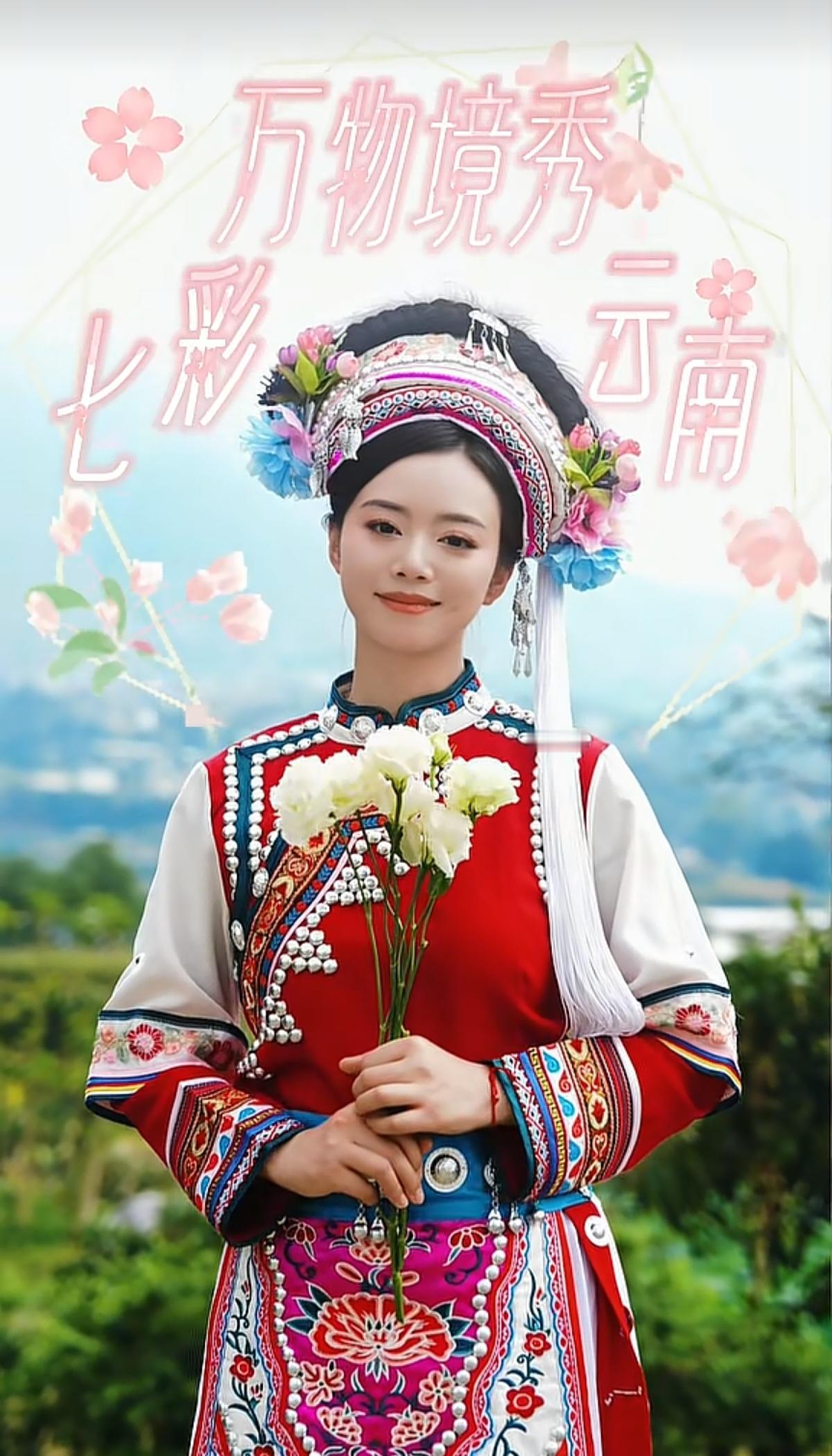 与辉同行的六位主播(潇潇、董董、小贝、鹏鹏、安安、传熙)这次“阅山河云南行”在当地身着民族服装的妆造。