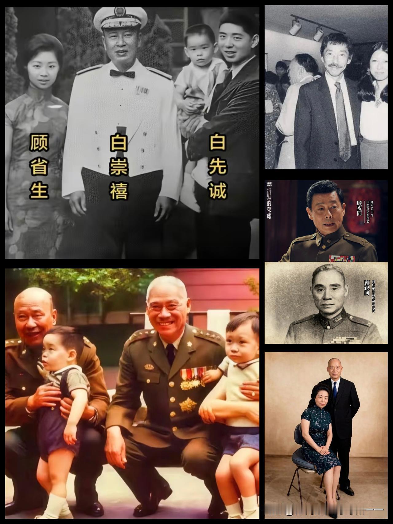 顾祝同和白崇禧这对老对手居然是儿女亲家,儿子还是三毛的恩师!! 一、二子 1. 长子 顾潮生(原配杨氏所生 学历:旧式私塾启蒙,无高等学历; 工作:早年留居大陆,普通谋生,无公职、无军政职务; 婚姻:早年旧式婚配,家属信息隐秘,一生低调无闻。 2. 次子 顾福生(续弦许文蓉所生) 学历:台湾师范大学美术系,深耕西洋美术; 工作:知名现代画家、五月画会创始人,文艺界名家,三毛启蒙恩师; 婚姻:一生低调晚婚,常年旅居美国,潜心艺术,远离政坛。 二、八女(按长幼排序) 3. 长女 顾开生 学历:旧式家庭教育+中学程度; 工作:婚后全职居家,相夫教子,无社会职业; 婚姻:婚配台湾普通世家,一生深居简出,无公开社交记录。 4. 次女 顾惠生 学历:民国时期高中文化; 工作:早年短暂文职,婚后辞去工作专注家庭; 婚姻:婚配公职中层人员,生活安稳,极度低调。 5. 三女 顾省生【核心名人联姻】 学历:台湾师范学院毕业,受过良好新式教育; 工作:婚后全职主妇,不对外工作; 婚姻:嫁白崇禧第三子白先诚,桂系与顾系豪门联姻,定居台北。 6. 四女 顾瑞生 学历:中专/商科毕业; 工作:早年从事简易文书、会计类基础工作; 婚姻:嫁商界普通人士,家庭安稳,远离权贵圈子。 7. 五女 顾锦生 学历:中学学历,家学教养良好; 工作:一生居家,极少外出就业; 婚姻:婚配技术阶层人士,生活平淡,无外界记载。 8. 六女 顾永生 学历:完整中学教育; 工作:长期居家,无正式职业; 婚姻:婚配台湾本地书香门第,行事内敛,不涉政商。 9. 七女 顾珏生 学历:中等教育程度; 工作:一生未外出工作,顾家持家; 婚姻:婚配军方低层文职人员,生活低调无曝光。 10. 八女 顾琏生【豪门联姻】 学历:大专文化,社交教养出众; 工作:婚后参与部分社团社交,无固定全职; 婚姻:嫁陶一珊之子陶鸿杰,台湾工商界名流亲家,人脉广泛。 整体汇总 1. 顾家两大高光子女: - 顾福生:文艺界名人、三毛恩师 - 顾省生:联姻桂系巨头白崇禧家族 - 顾琏生:联姻台湾商界军政世家陶家 2. 其余子女:学历中上、多为全职主妇+普通上班族,不参政、不显眼,安稳度日; 3. 长子留大陆,其余全部定居台岛或旅居海外,两岸分隔。