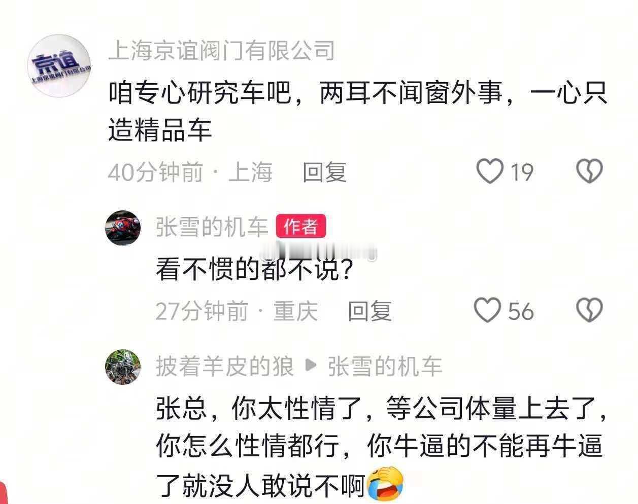 张雪为余总发声同频的人总是惺惺相惜