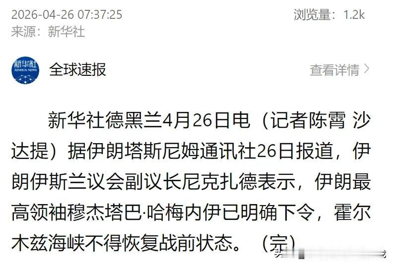 刚刚!伊朗最高领袖下令:霍尔木兹海峡,回不到从前了 今早刷到这条消息,我手里的咖啡差点没端稳。伊朗最高领袖穆杰塔巴直接拍了板,霍尔木兹海峡,甭想再回到战前那副模样了。这话一出,全球油价怕是要坐过山车,咱们加油站的数字,估计又要往上跳一跳。 你可能不知道这海峡有多金贵。全球每5桶油,就有1桶得从这儿过,卡塔尔的天然气、沙特的原油,全指着这条“海上咽喉”喘气。之前战事一闹,海峡里船都没几艘,油价直接飙到100美元一桶,现在最高领袖又放话“不恢复战前状态”,明摆着是要把这“卡脖子”的劲儿,一直攥在手里。 美国那边早就急了眼,特朗普前两天还威胁要炸伊朗的发电厂,美军驱逐舰天天在海峡口晃悠,说是要“全面封锁”。可伊朗革命卫队也不是吃素的,直接喊话“美军基地遭过毁灭性打击,赶紧滚出中东”,两边剑拔弩张,就差没擦出火星子。 最遭罪的是周边国家。日本、韩国90%的原油都靠这儿运,现在船要么绕道非洲,要么停在港口干瞪眼,运输成本涨了40%,最后还不是咱们消费者买单?欧洲更惨,卡塔尔的天然气运不出来,冬天取暖费怕是要翻倍,难怪有网友调侃“伊朗这一嗓子,喊得全球钱包都疼”。 有人说这是伊朗在“赌气”,我倒觉得,这是人家攥着最后的筹码。战事打了这么久,伊朗的导弹没被打趴,美军基地反倒挨了揍,现在拿海峡当“谈判桌”,明摆着是要让美国知道,想谈可以,得按我的规矩来。 你看特朗普的反应就懂了,前脚还说要派特使去巴基斯坦谈,后脚直接取消行程,嘴硬说“想谈直接打电话”。可谁不知道,伊朗总统早就放话“不会在威胁下谈判”,两边谁也不肯先低头,这海峡的“梗阻”,怕是要成常态了。 咱们普通人可能觉得这事儿离得远,可你想想,油价涨了,快递费会不会涨?天然气贵了,冬天做饭会不会多花钱?全球供应链一乱,手机、电脑这些玩意儿,说不定也要跟着涨价。 说到底,霍尔木兹海峡从来不只是伊朗和美国的“战场”,它是全球经济的一根“神经”。伊朗这一嗓子,喊醒的不是美国,是咱们每个人的钱包。 对了,你觉得这海峡还能重新开放吗?油价会不会破120?欢迎你在评论区唠一唠,说不定你的判断比专家还准。 霍尔布兹海峡 霍尔木兹危机 伊朗海峡危机 封锁霍尔木兹 伊朗封海峡