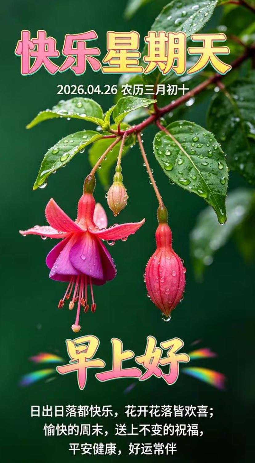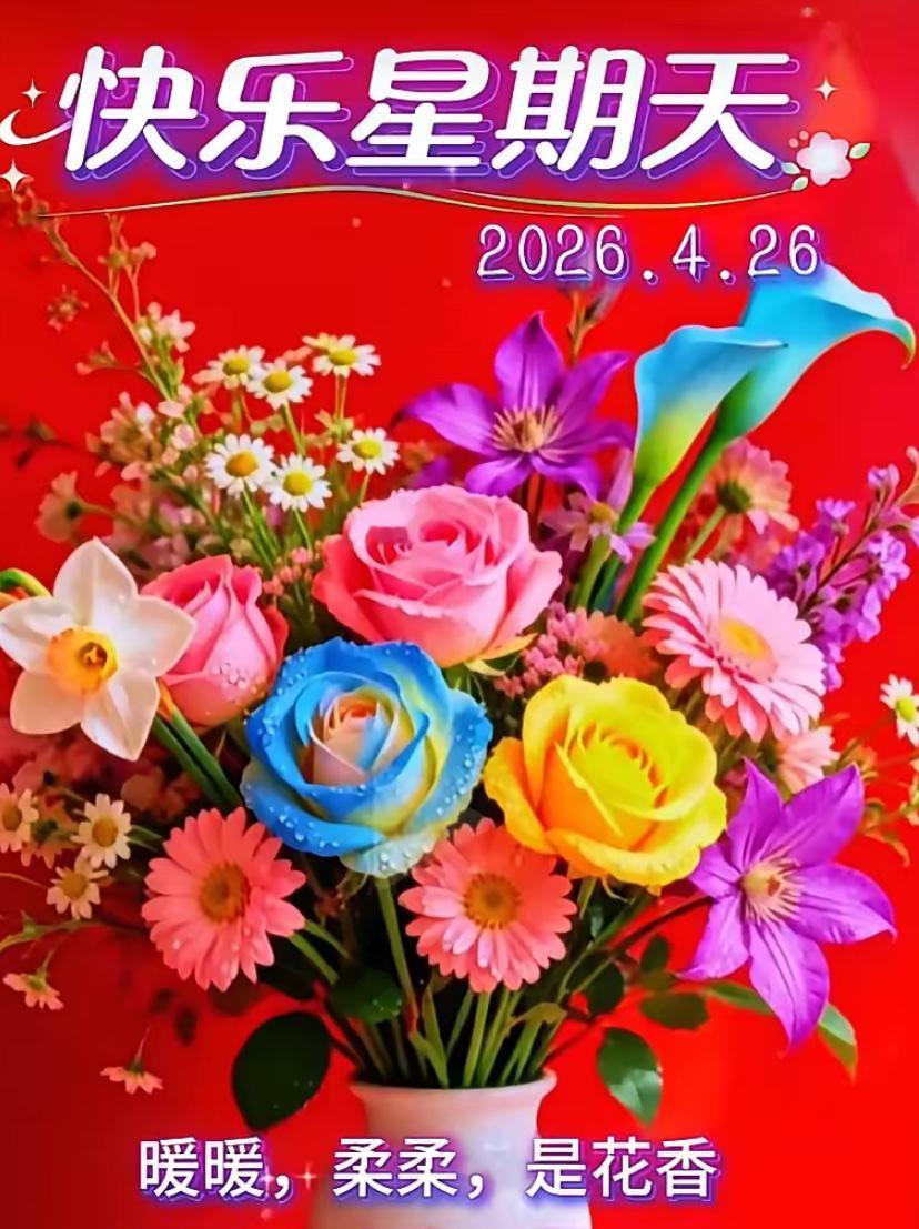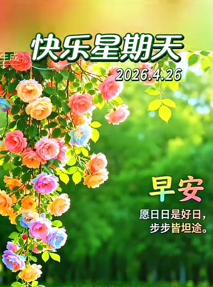 🌺☘️2026./4.26.周日早安问侯🌺 🌱🌅清晨的阳光,抚平心底褶皱。岁月匆匆向前,唯有真挚情谊,始终温暖如初,一份简单问候,饱含深深牵挂;一份真心祝福,愿你身心康健,诸事顺心。往后余生,不慌不忙,不攀不比,守一份内心的清净,享一份简单幸福。少些烦忧,多些豁达,与健康相伴,和平安相随。愿每一个清晨都舒心惬意,每一段时光都温润如玉,周日早安。