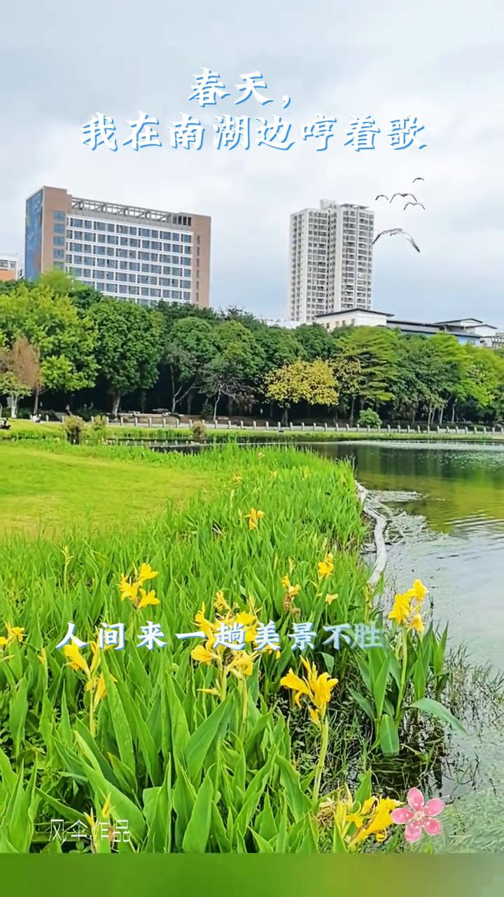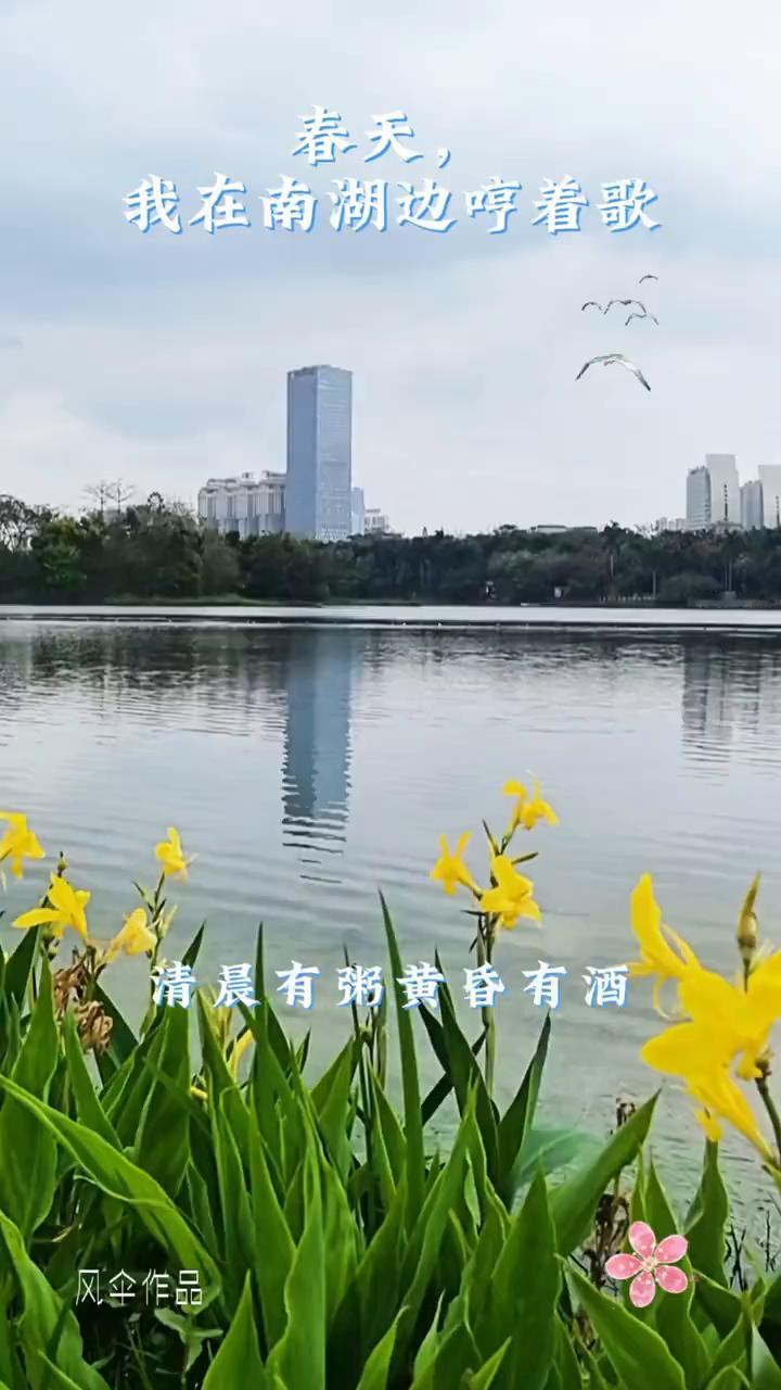 春天,我在南湖边哼着歌。 清晨有粥,黄昏有酒,天黑有星,人间来一趟,美景不胜收。越过这片海,去下座山丘。我爱大风,也爱烈酒,爱山川锦,留不住的人不必再挽留。大河向东流,我要向前走,所有烦恼哀愁抛在身后。往事化成风,故事酿成酒,一杯敬山海,一杯敬自由。