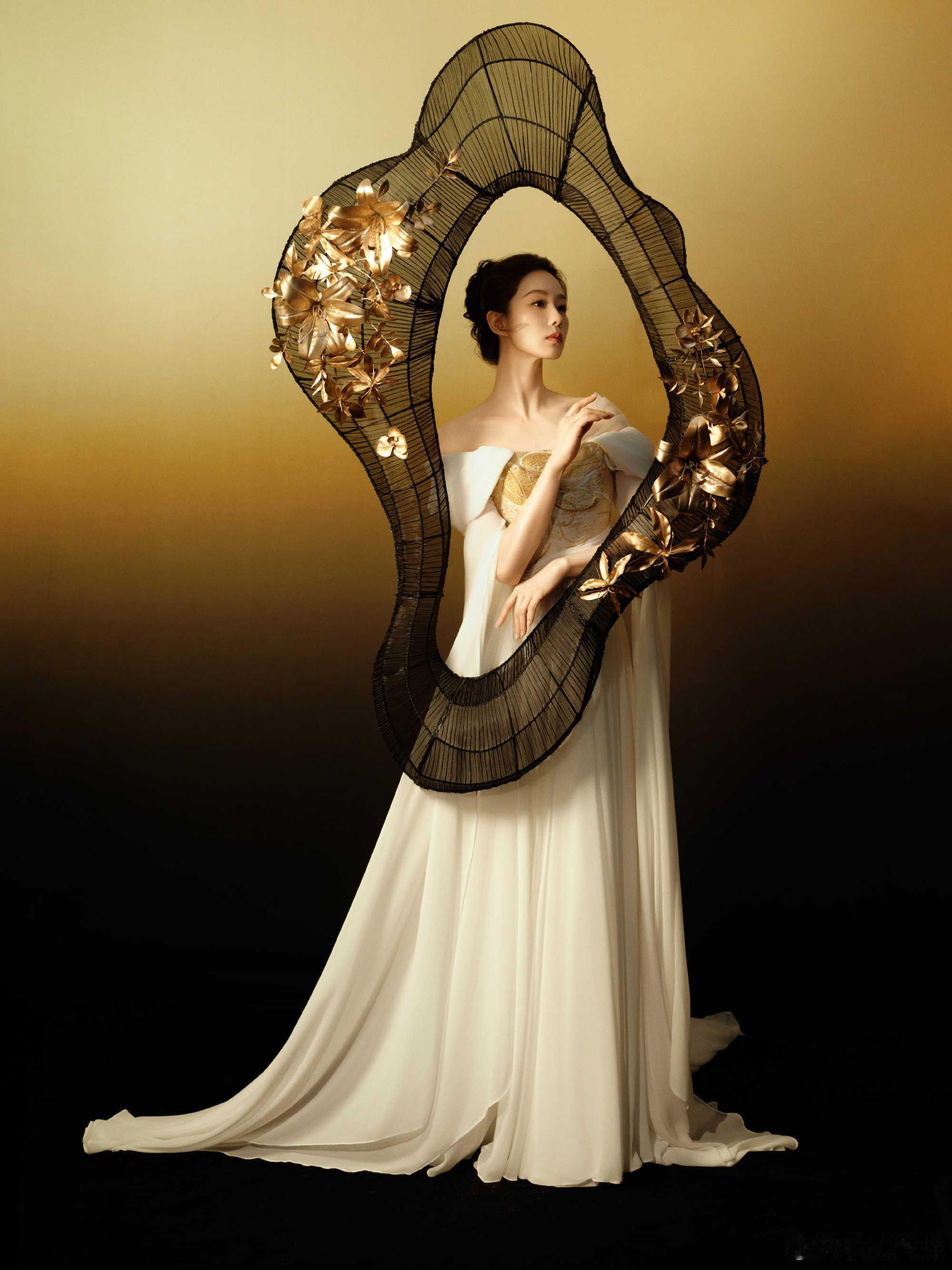 身穿特别定制礼服搭配周大福珠宝亮相 ,胸衣的鎏金刺绣如天坛祈年殿的檐角流光 ,垂坠的白纱似流云舒展 ,一步一韵 、一颦一神 ,尽显东方神女的典雅风骨与雍容气度 ,实在太美 ~ 🌟