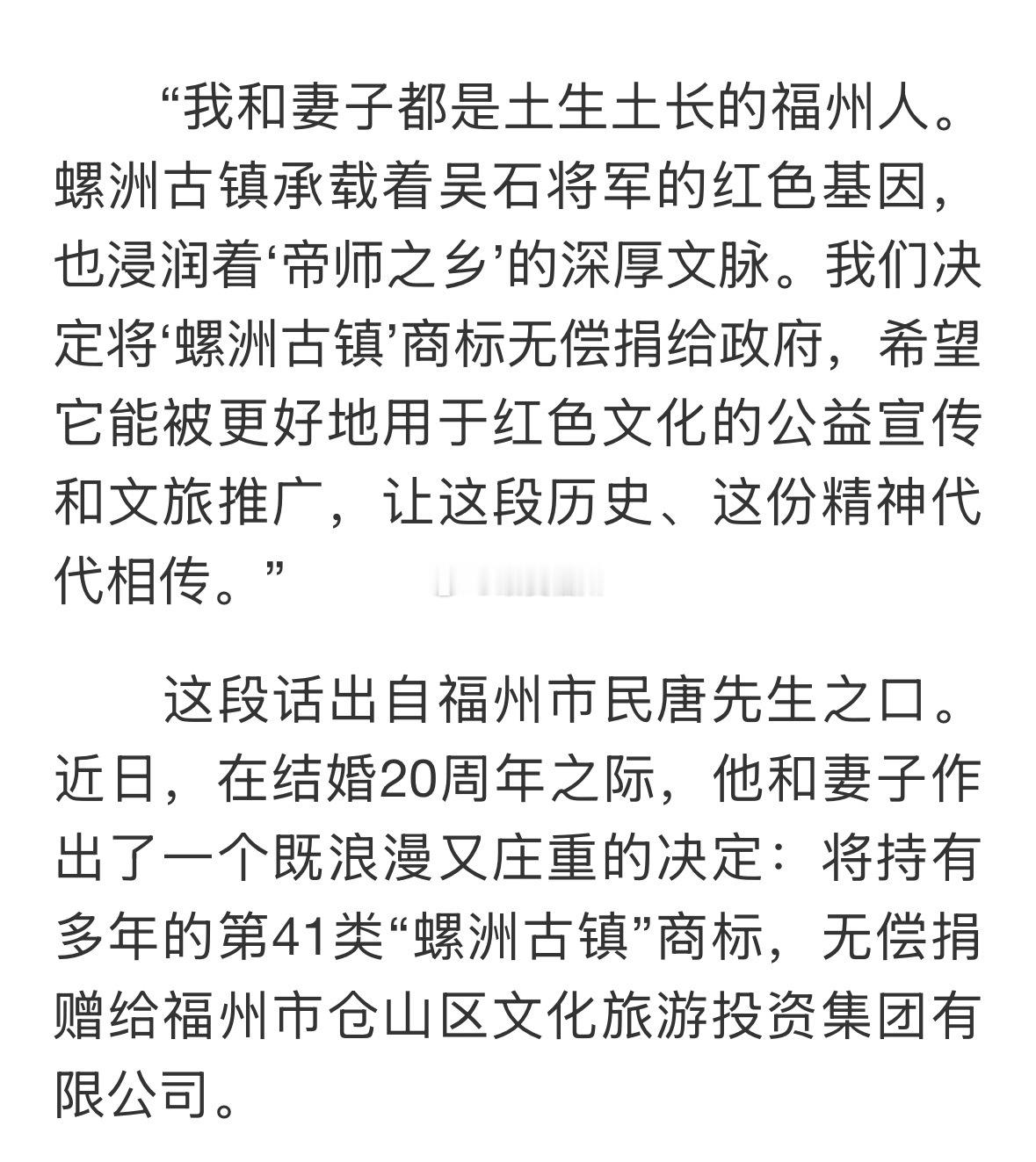 福州夫妇无偿捐赠“螺洲古镇”商标