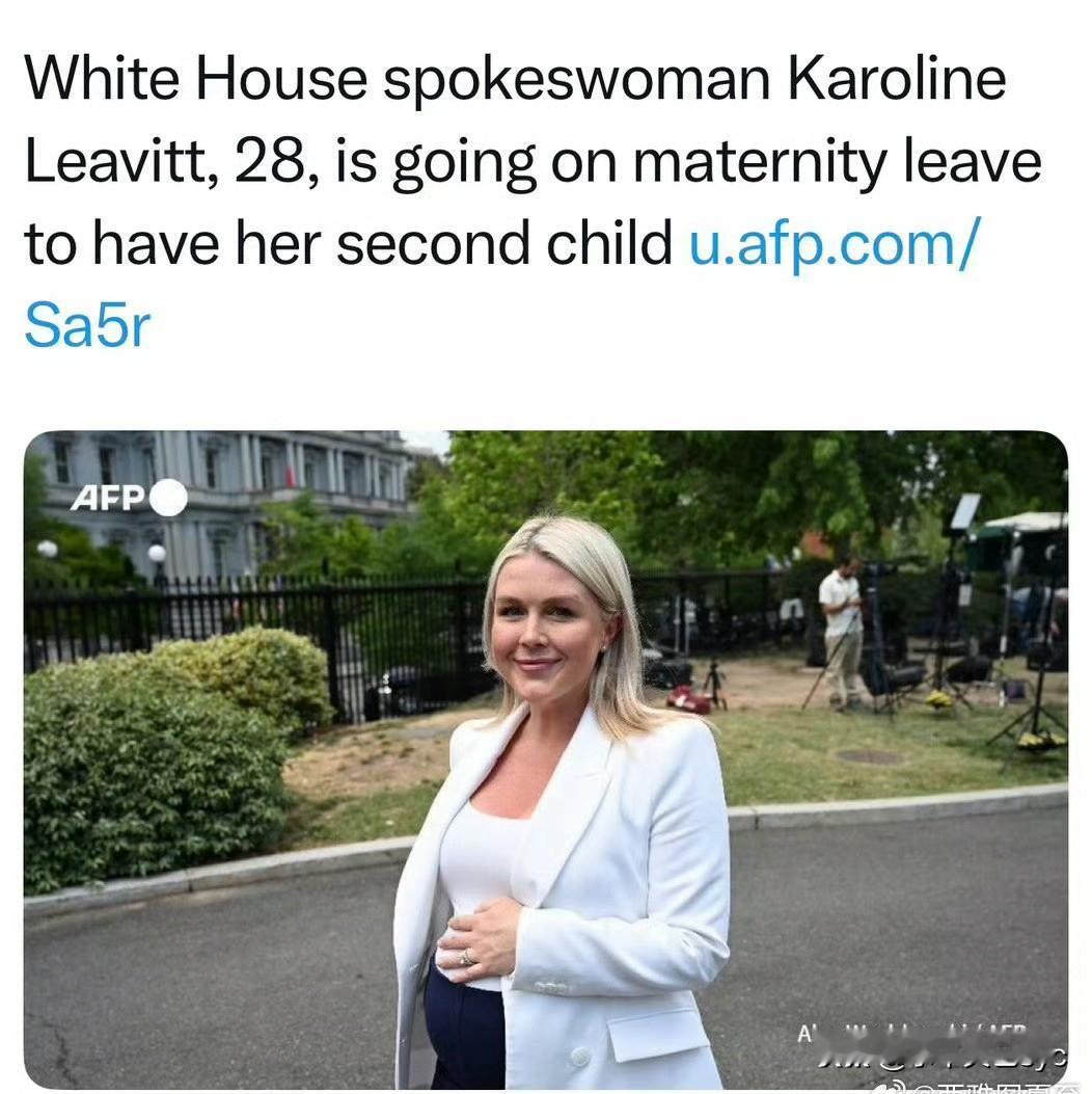 白宫新闻秘书卡罗琳·莱维特,开始休产假。 这是她要生产的第二个孩子, 第一个是2024年夏天出生 。 莱维特现年28岁,是美国历史上最年轻的白宫新闻秘书。她的第一个孩子出生于2024年夏天(儿子,现年约1岁8个月),本次二胎为女儿,预产期为2026年5月初(即下周)。她在2025年12月已公开怀孕消息,并感谢特朗普政府营造的“支持家庭氛围”。 莱维特强调产假结束后将重返岗位,但具体休假时长未公布。 值得注意的是,她在生头胎时仅休息4天便复工,本次是否延续高效作风尚不确定。 职务代理机制 在她休假期间,白宫不会设立正式的代理发言人,而是由副总统万斯、内阁成员甚至特朗普总统本人轮流主持发布会,这种“轮流坐庄”的模式在白宫历史上颇为罕见。