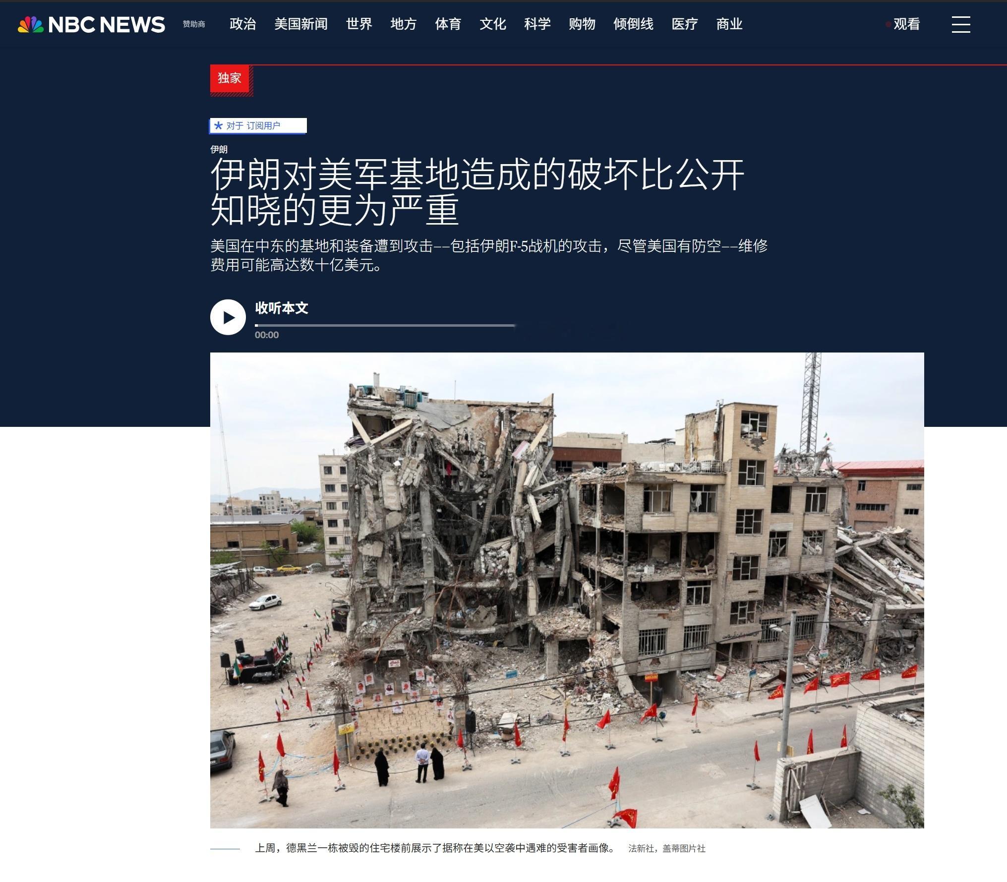 美媒:伊朗F-5战机曾轰炸美军基地——NBC援引三名美股官员、两名国会助理和另一知情人士的消息称,伊朗的导弹和无人机袭击对中东地区美军基地的破坏严重程度远超美军公开承认的程度,预计修复费用将高达数十亿美元。