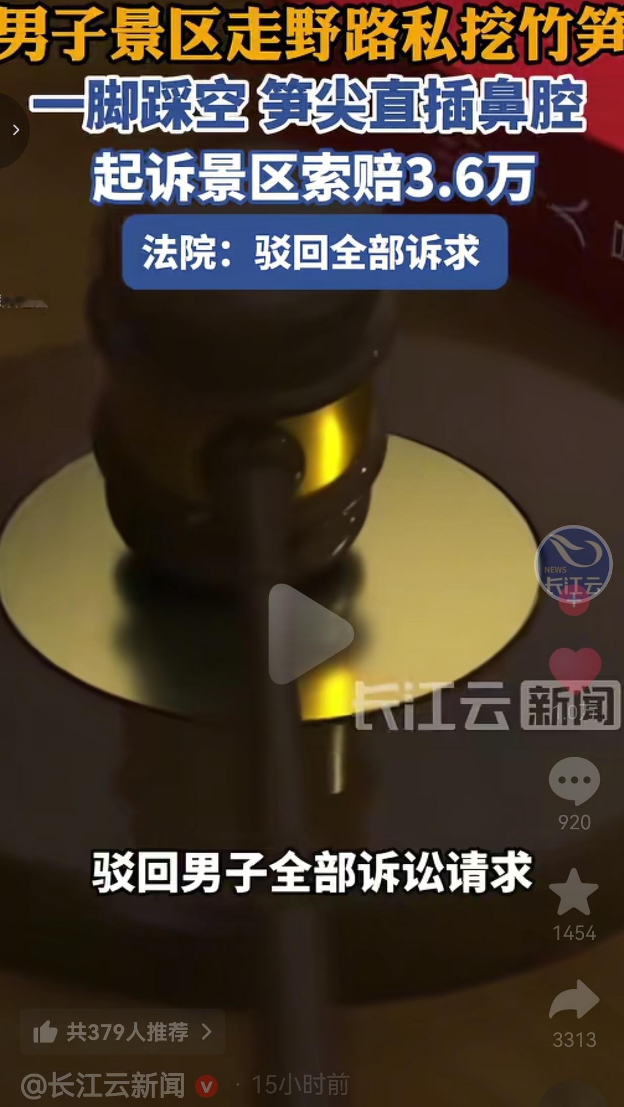 景区偷挖竹笋,自己踩空被笋尖戳穿鼻子,转头告景区索赔3.6万,法院判了! 这事儿我看完,真是气笑了,也彻底服了。 事情是这样的,重庆一男子前往景区游玩,放着好好的游客步道不走,偏偏特意绕到野外竹林里,一门心思偷挖竹笋。 景区早就四处张贴了游客须知,明文禁止采挖竹笋,可他为了占这点小便宜,全然无视景区规则,执意跑到非游览区域以身涉险。 没想到挖笋过程中,他一脚踩空失去平衡,整张脸直直朝下栽倒,地上尖锐的笋尖当场戳穿他的鼻腔,瞬间血流不止。 事后他住院9天,花费了2.6万元,转头就把景区告上了法庭,一口咬定景区没有尽到安全保障义务,要求赔偿医药费、误工费等共计3.6万元。 面对这样的诉求,景区直接强硬反驳:景区设置了明确的游客游览步道,也尽到了全面的提醒义务,各处都张贴了禁止采挖竹笋的公告,是他自己擅自脱离安全区域,违规偷挖竹笋才导致受伤,凭什么把责任推给景区?自己违规闯祸,根本怪不到别人头上。 最终法院一锤定音:驳回该男子的全部诉讼请求,就连160块钱的案件受理费用,也全部由他个人承担! 这事在网上曝光后,直接引爆舆论,网友们的评论一边倒,全是愤怒的吐槽: 有的网友说:“这笋尖也太冤了,好好长在土里,啥也没干反倒成了过错方?合着他不主动去挖笋,笋还能自己追着戳他不成?” 也有的网友说:“自己违规走野路偷东西,受伤了就赖景区,这是什么强盗逻辑?难道景区还要给每根笋尖套上保护套,防着游客自己往上撞?” 还有的网友说:“这种人就是典型的‘我弱我有理’,在他眼里,全世界都得为他的贪心和无知买单,还好法院判得公正,大快人心!” 更有网友表示:“真好奇他挖来的竹笋还吃不吃,鼻子都被戳穿了,吃的时候心里就不膈应吗?” 说真的,看完这整件事,我除了觉得好笑,更多的是满心的生气。 明明是自己无视规则、违规闯入禁入区域,还做出偷挖景区财物的行为,最后因为自己操作不当受伤,转头就想把所有责任甩给景区,这种行为实在让人无法理解。 景区规划了步道、张贴了提示,该尽的安全提醒义务全都做到了,难道还要专门派人寸步不离跟着,防止他自作主张闯祸? 说白了,这就是缺乏基本的规则意识和责任担当,自己犯了错不想承担后果,一门心思找别人背锅。 法院这次的判决,真的太解气,直接遏制住了这种胡搅蛮缠的歪风邪气。要是这种无理索赔都能胜诉,那以后是不是有人自己跳进河里,还要怪罪河水没有加盖? 最后我想说,法官早已明确,游客自身就是安全的第一责任人。别总抱着“我有理我能闹”的心态,社会的规则就是做人的底线,自己种下的因,就必须自己承担对应的果。 别拿任性当资本,也别把无知当挡箭牌,成年人的世界,每一次选择,都得自己买单。 对此,你怎么看? 来源:长江云新闻