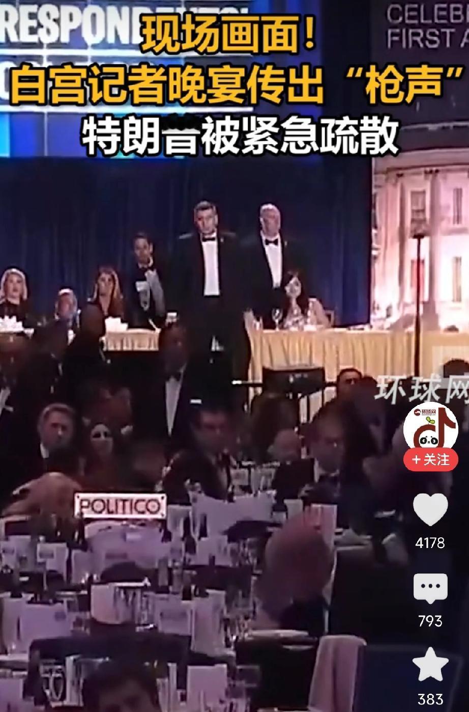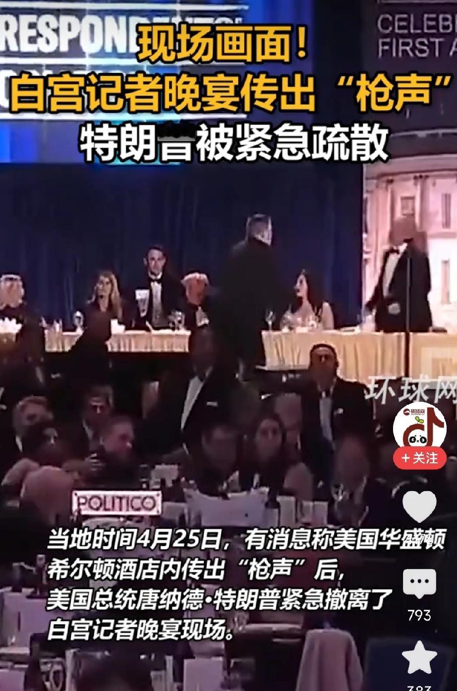 特朗普毕竟年老了,枪响后,台下人一片嘈杂慌乱,有的干脆躲在了桌子底下,特朗普却浑然不知,继续坐在上面闲聊。 所幸保镖非常负责,立刻过来直接站在了特朗普桌前,用身体挡在了最前面。 想想白宫记者晚宴都能混进刺客,里面如果没有内应是无论如何也是办不到的。 ——4月25日,白宫记者晚宴突发枪响。